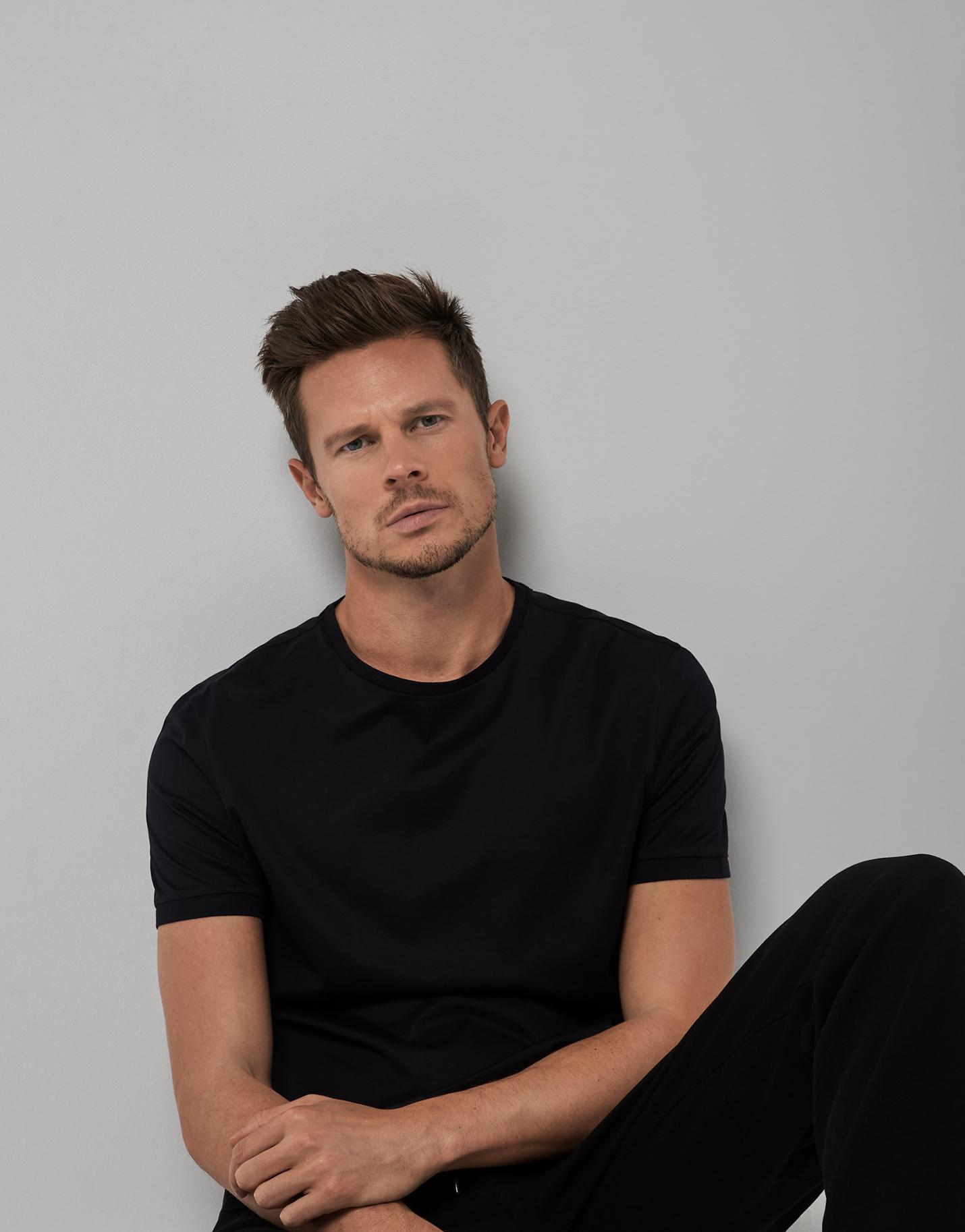 Camiseta de manga corta confeccionada en un algodón liso doble mercerizado color negro. Escote redondo y logo impreso en bajo cuello espalda. …