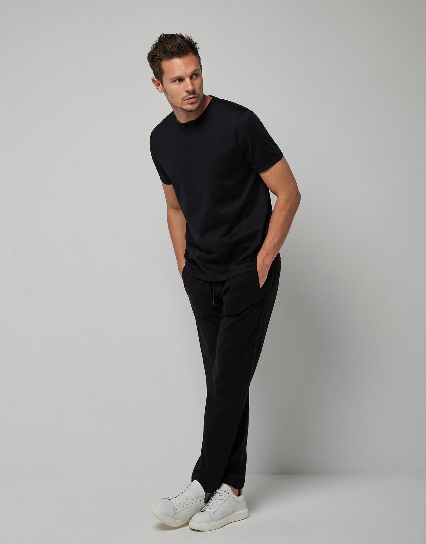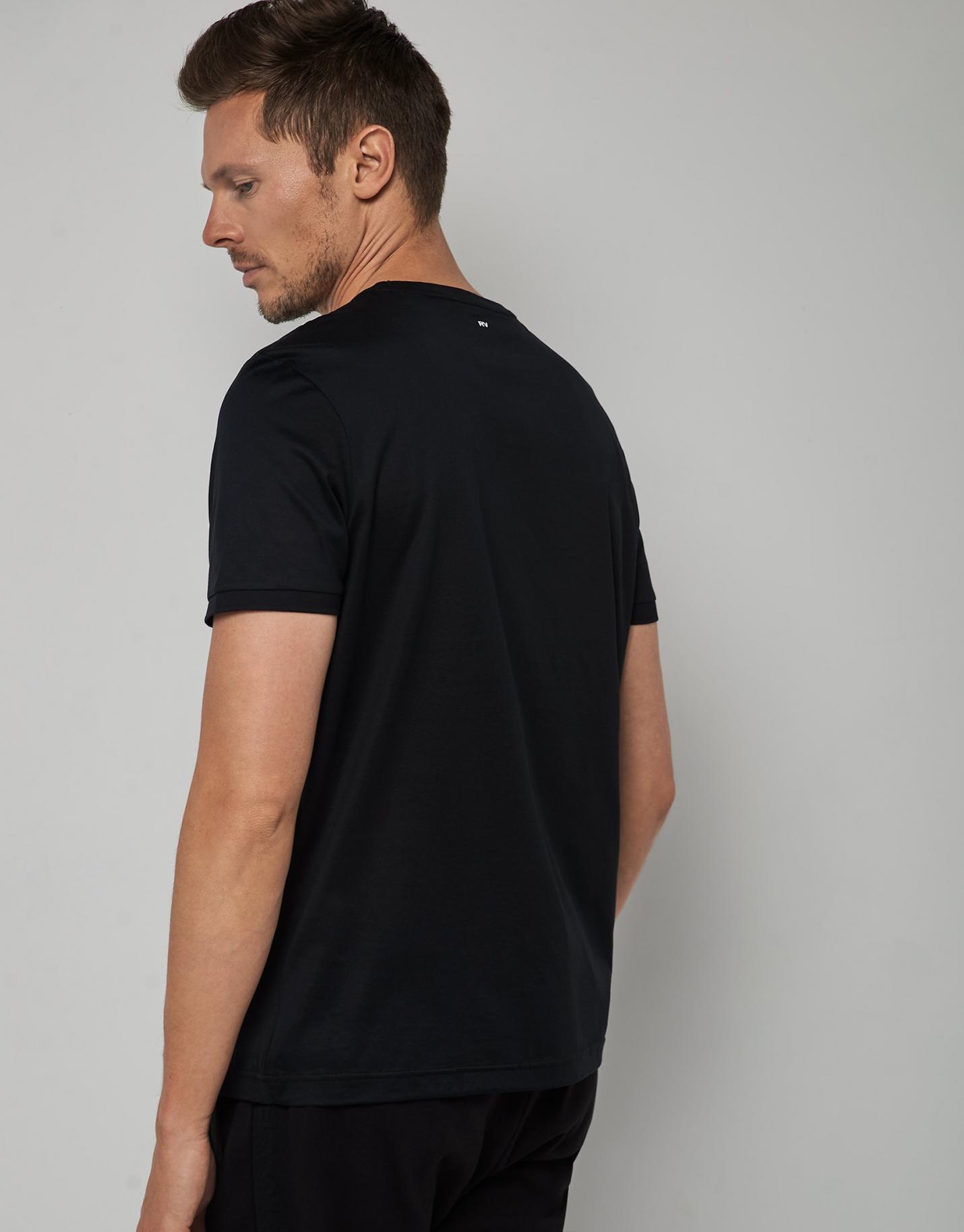 Camiseta de manga corta confeccionada en un algodón liso doble mercerizado color negro. Escote redondo y logo impreso en bajo cuello espalda.