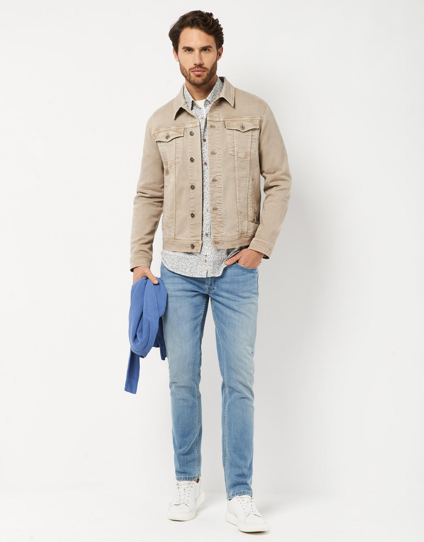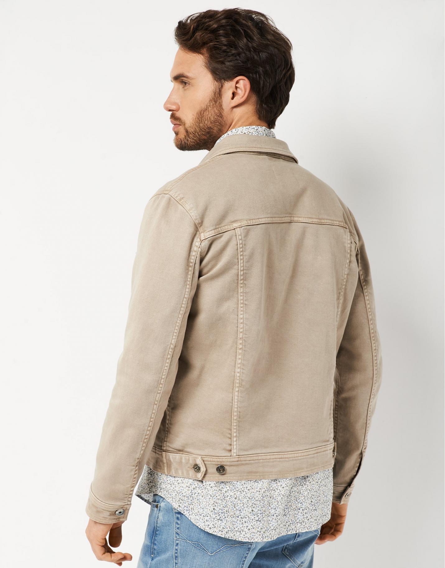 Cazadora vaquera confeccionada en un algodón ligeramente elástico color tintada en color arena y lava…