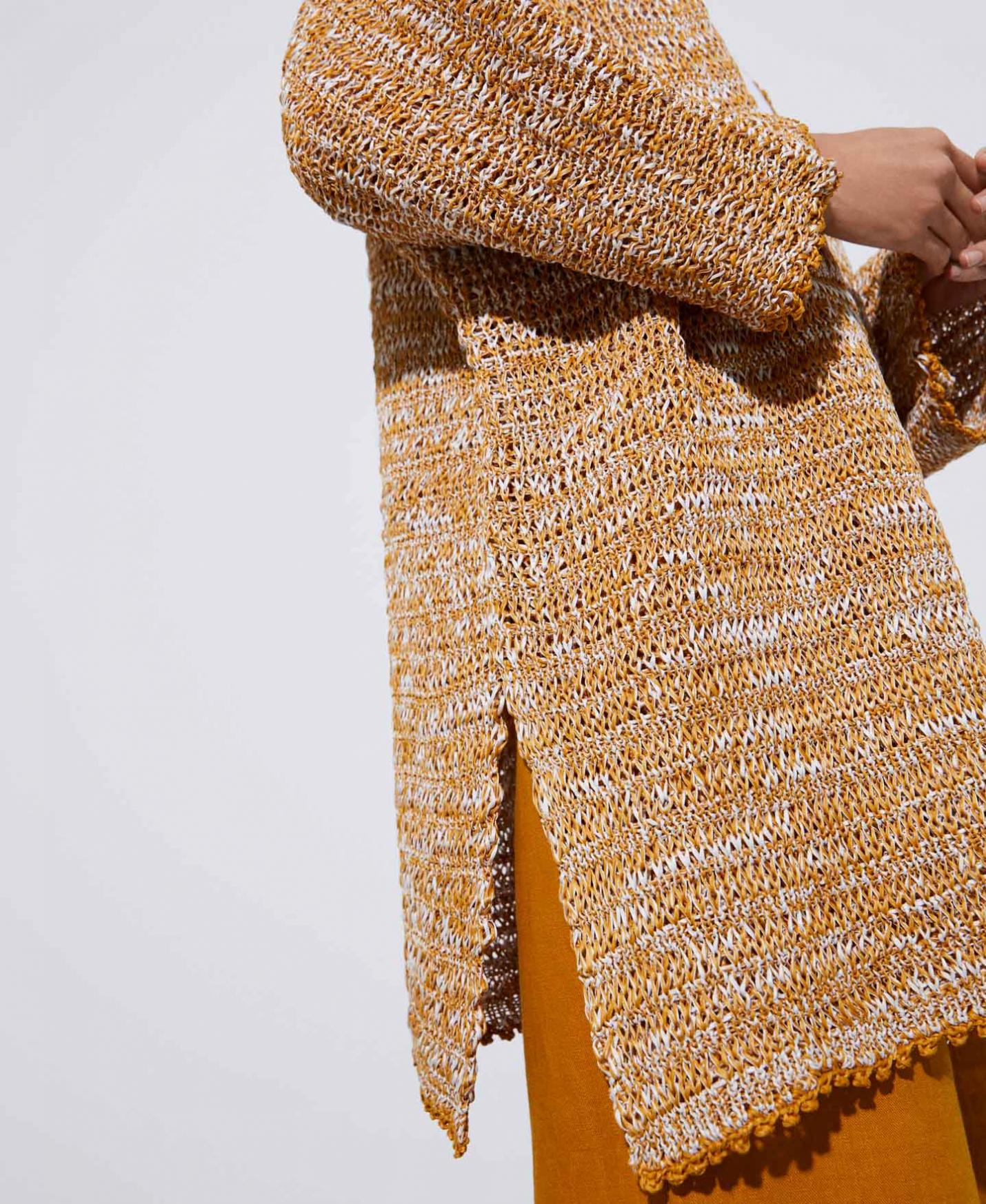 Descripción Ref.252121704121 Chaqueta kimono larga en punto de doble frontura. Manga larga recta. doble frontura manga larga recta …