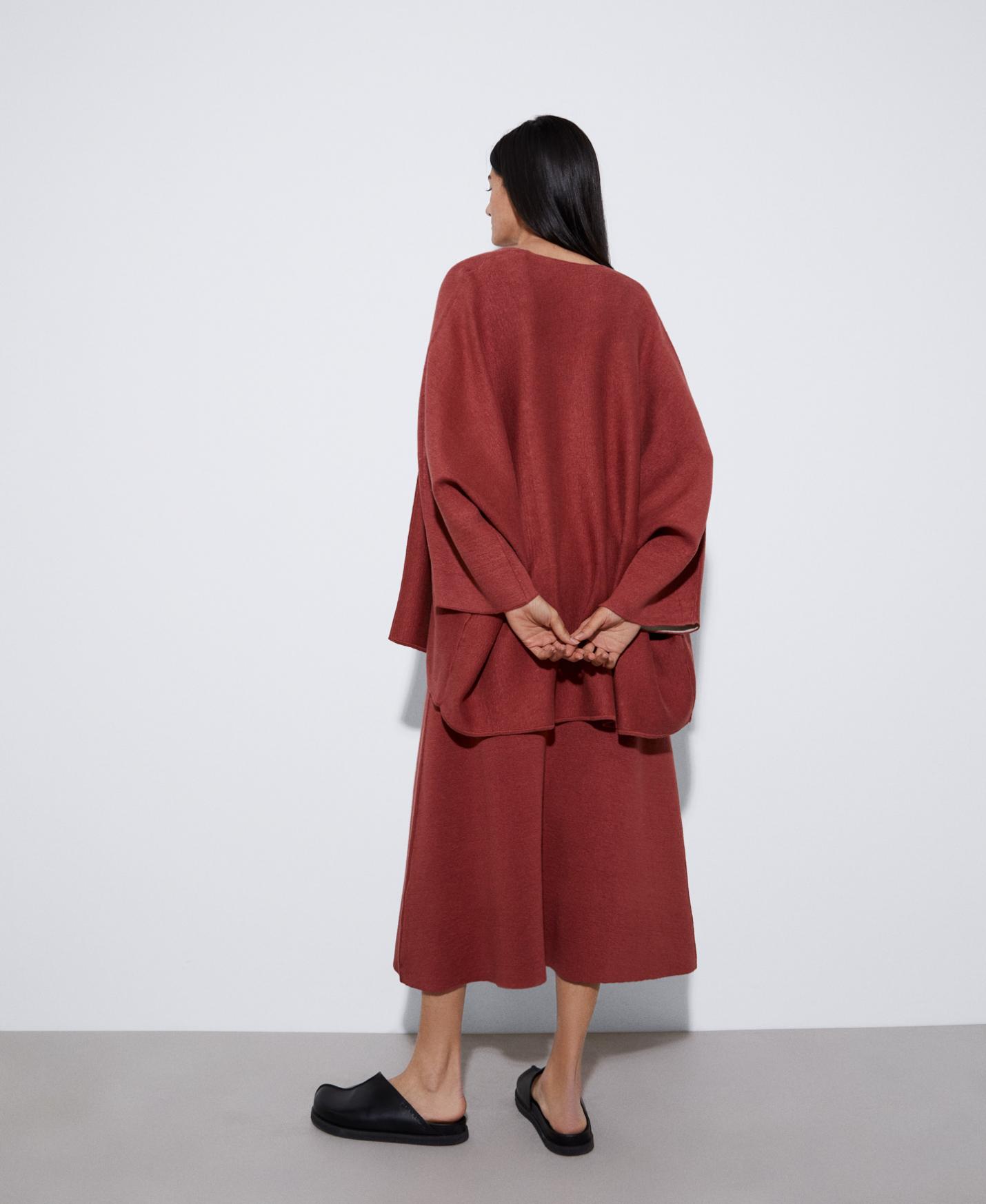 Chaqueta en punto de lino, nylon y viscosa. Tiene caída asimétrica, sin cierres y manga larga.