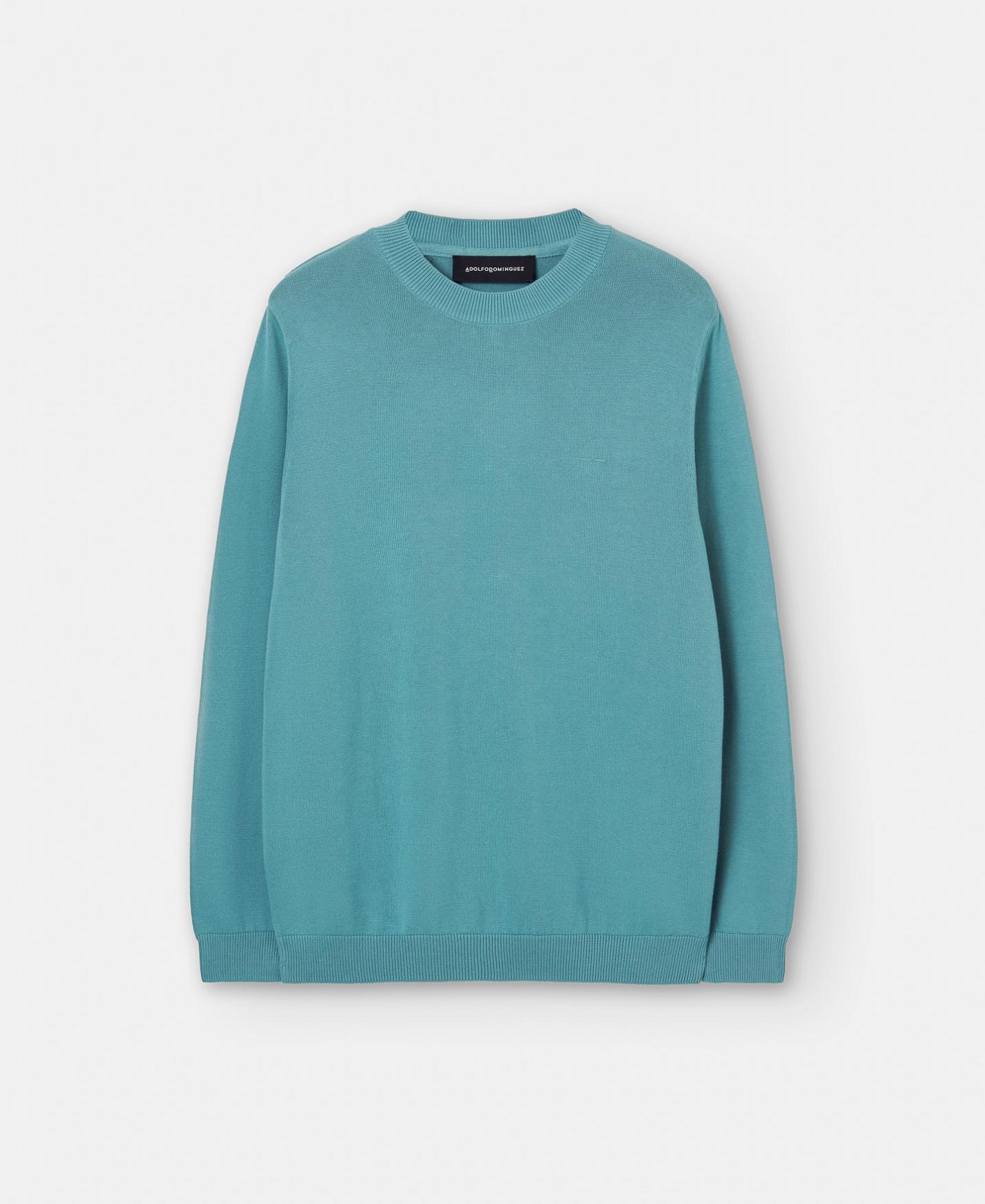 Jersey cuello caja en algodón responsable. Tiene cuello caja, manga larga y remates en rib.
