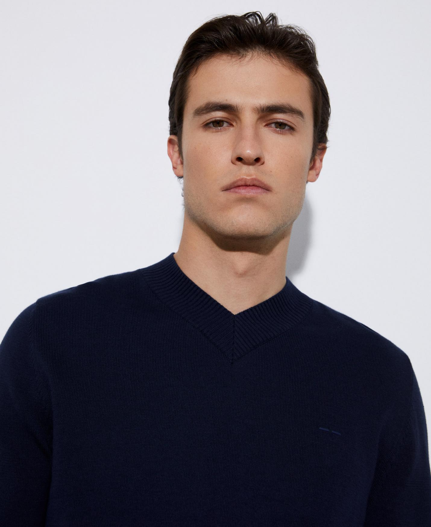 Punto Adolfo Dominguez | Jersey cuello pico algodón responsable Azulmarino Hombre
