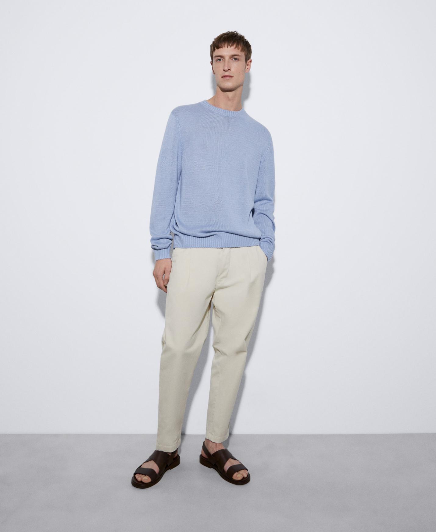 DescripciónRef.153161231221 Jersey cuello caja doble capa en viscosa responsable de LENZING™ y tejido de lino y nylon. Tiene cuello caja, manga larga y remates en rib. viscos…