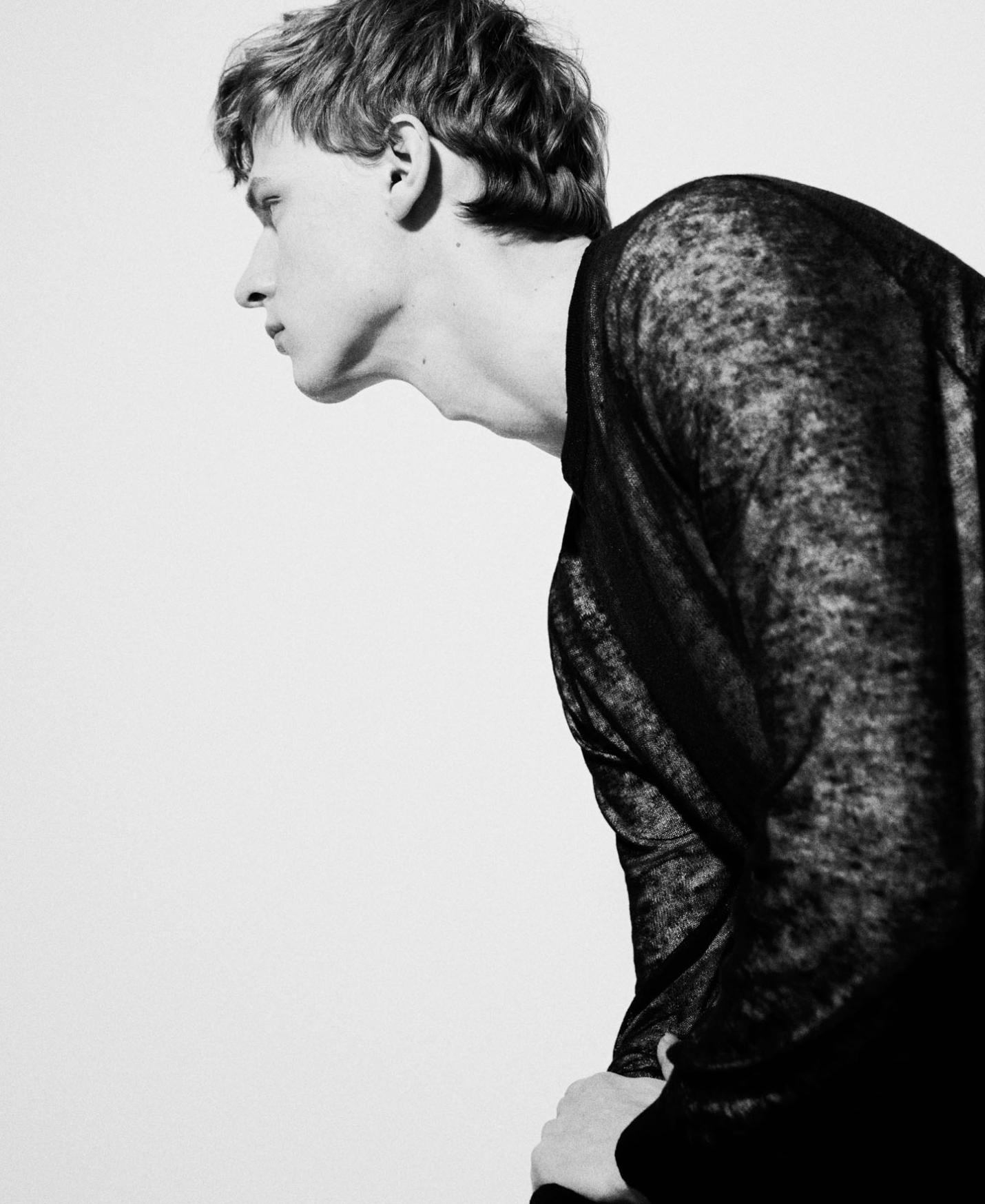 Jersey cuello caja doble capa en viscosa responsable de LENZING™ y tejido de lino y nylon. Tiene cuello caja, manga larga y remates en rib.