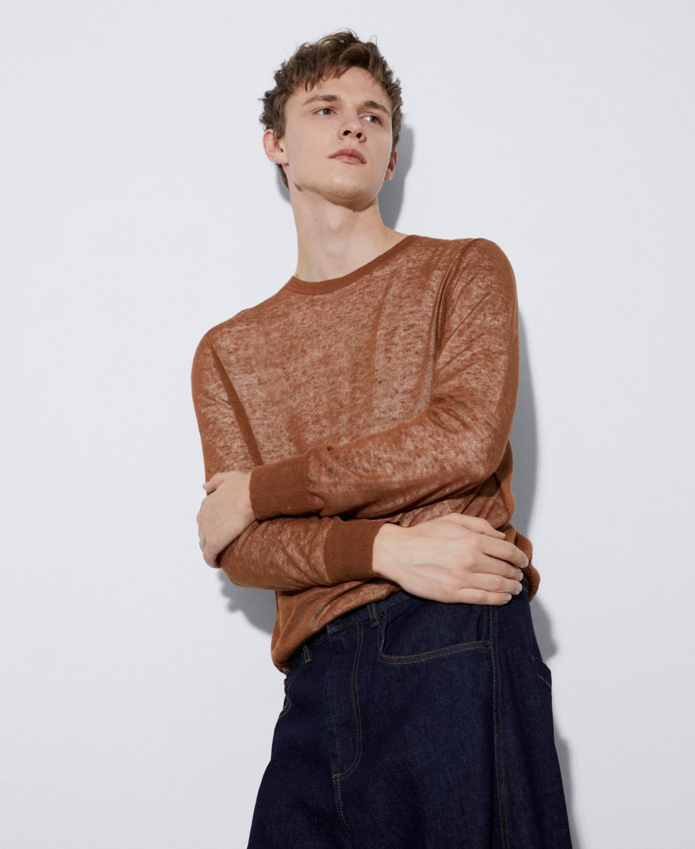 Punto Adolfo Dominguez | Jersey doble capa en viscosa responsable Tabaco Hombre