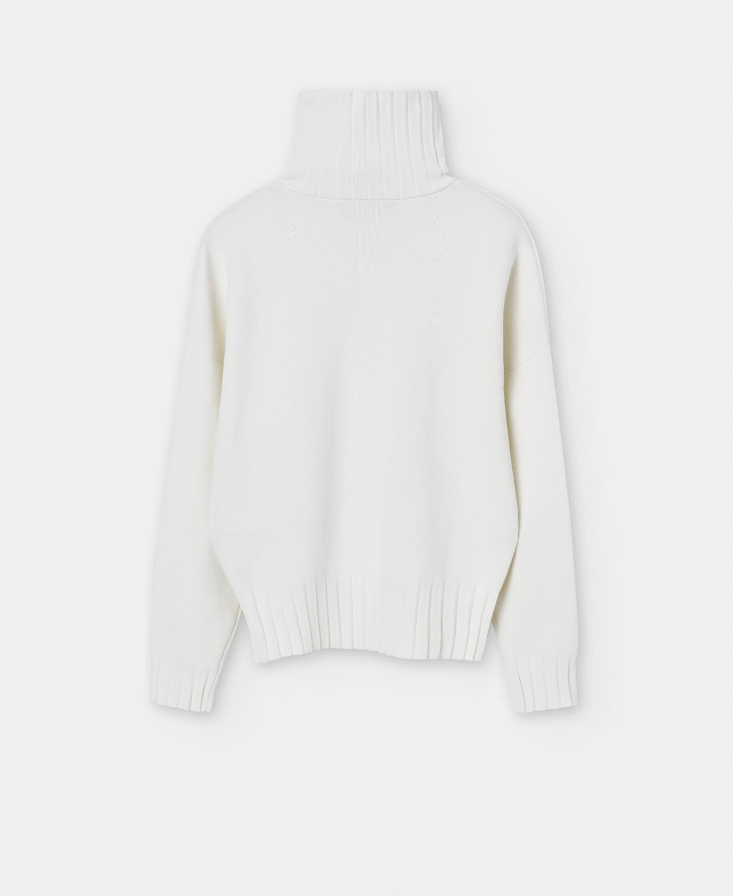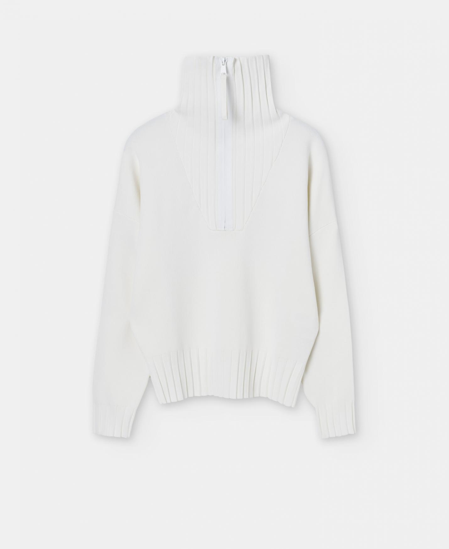 Jersey doble frontura confeccionado en viscosa y nylon reciclado. Tiene cierre cremallera, cuello marinero en canalé, manga larga caída y bajo elástico.
