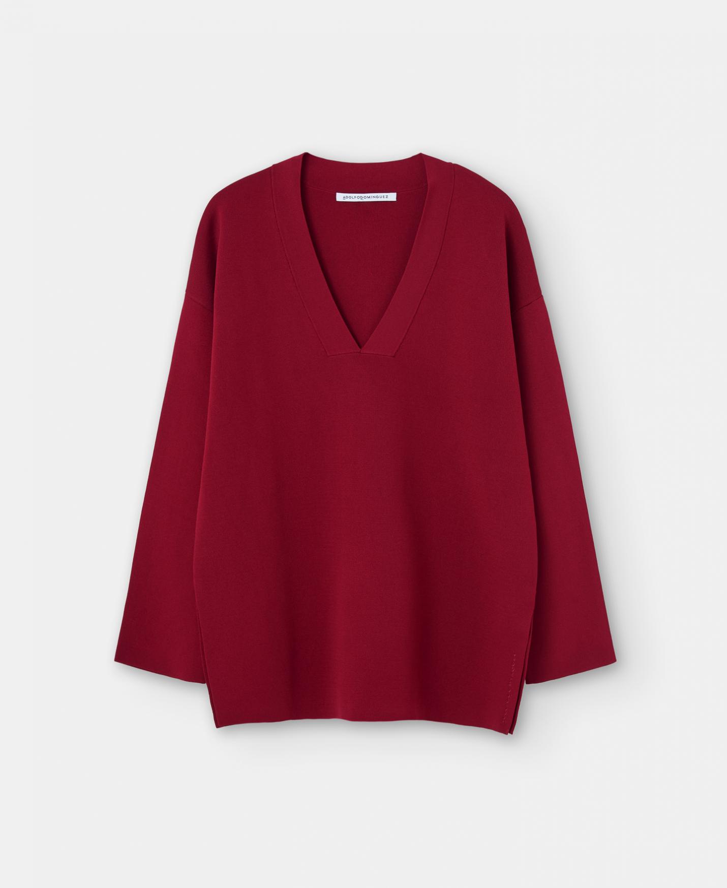 Punto Adolfo Dominguez | Jersey escote pico en nylon reciclado Rojo Mujer