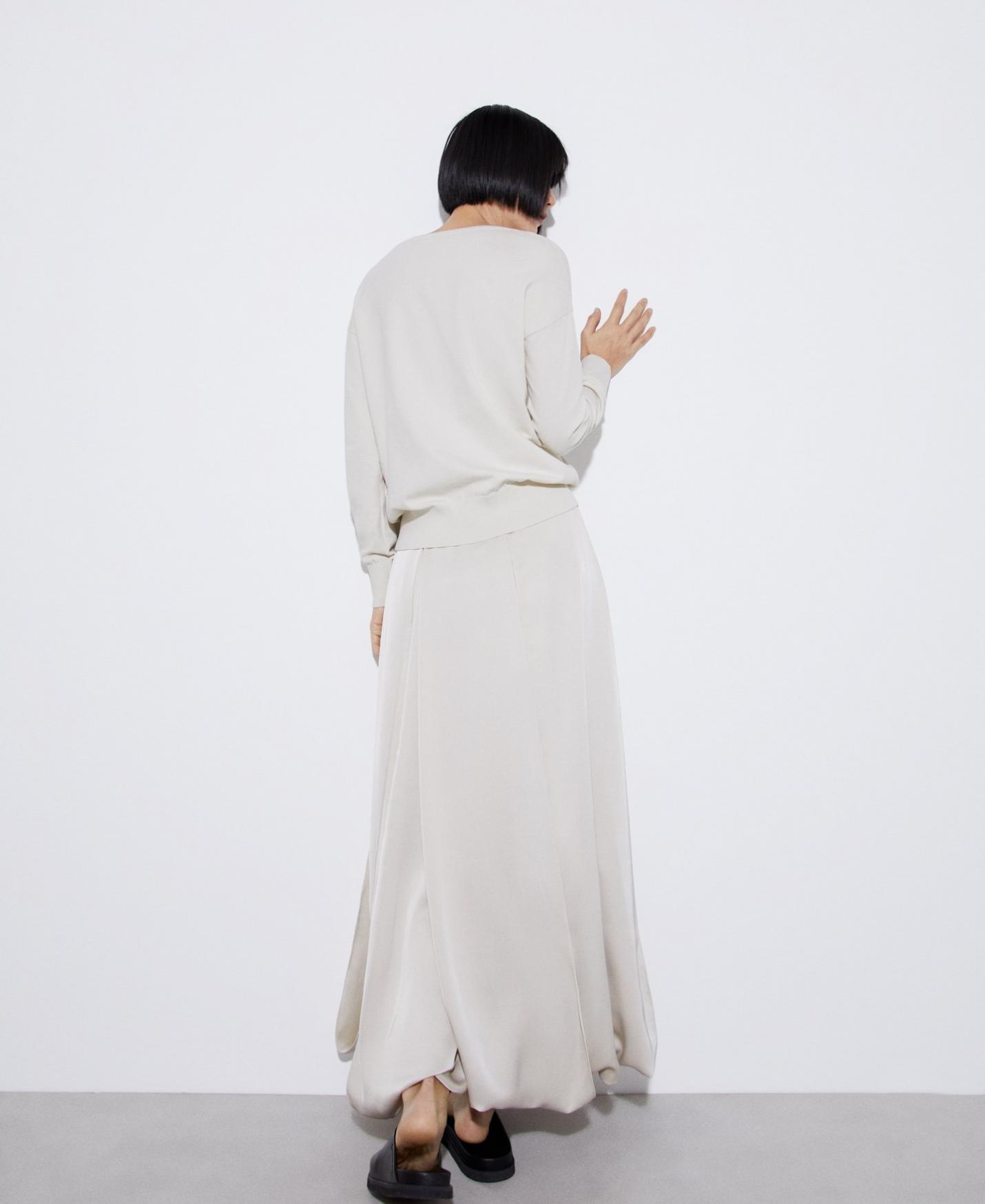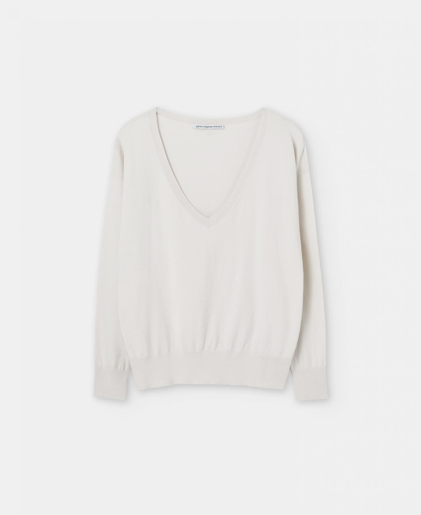 Jersey escote pico en punto de viscosa. Manga larga. Remates en rib. Bajo recto.