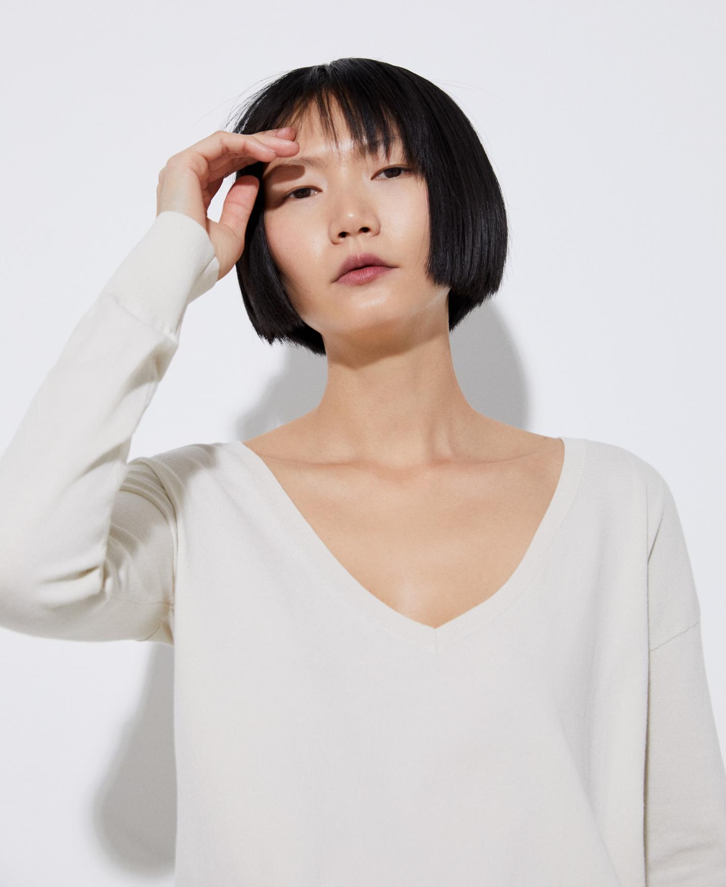 Punto Adolfo Dominguez | Jersey escote pico en punto de viscosa Beige Mujer