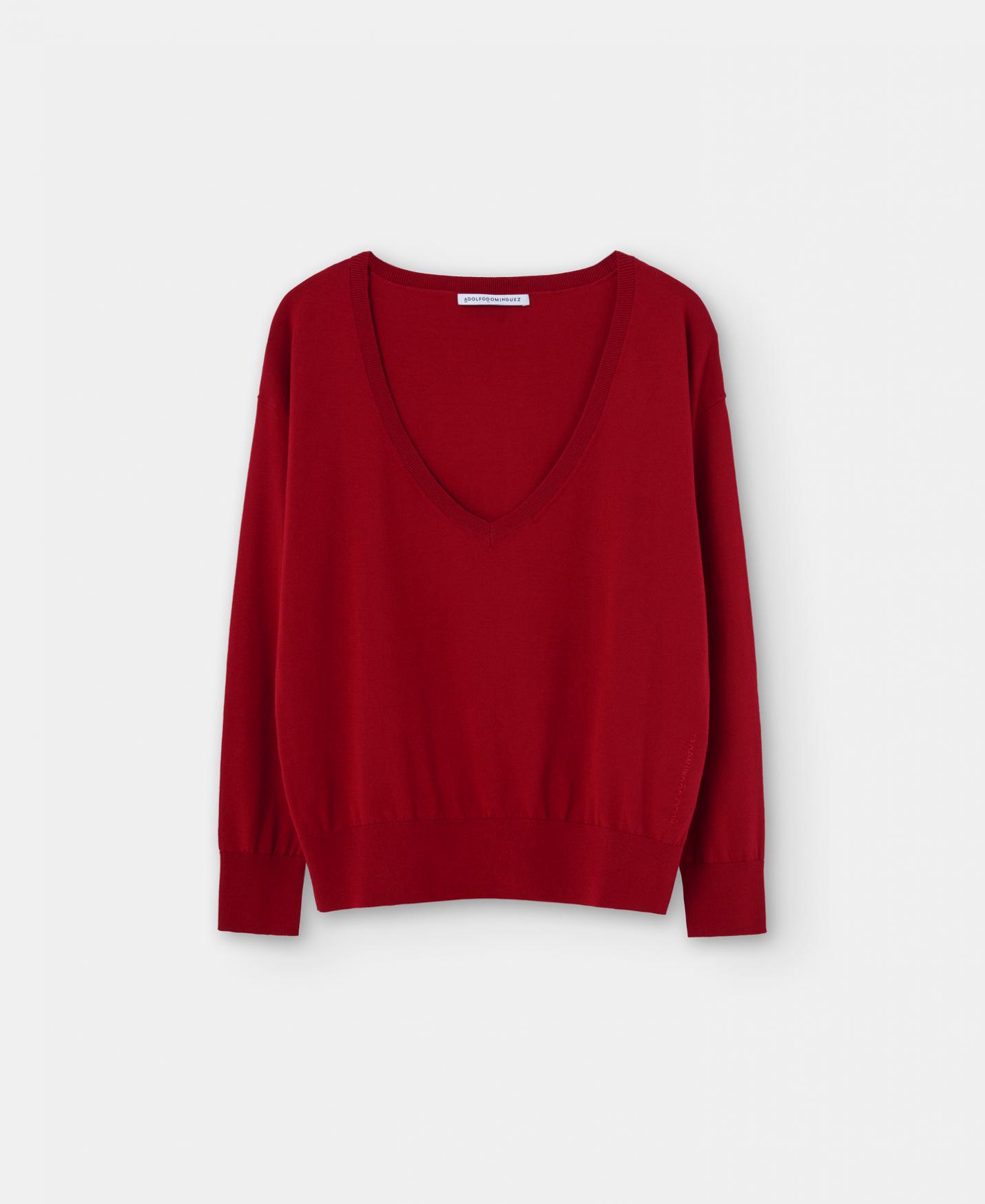 Punto Adolfo Dominguez | Jersey escote pico en punto de viscosa Coral Mujer