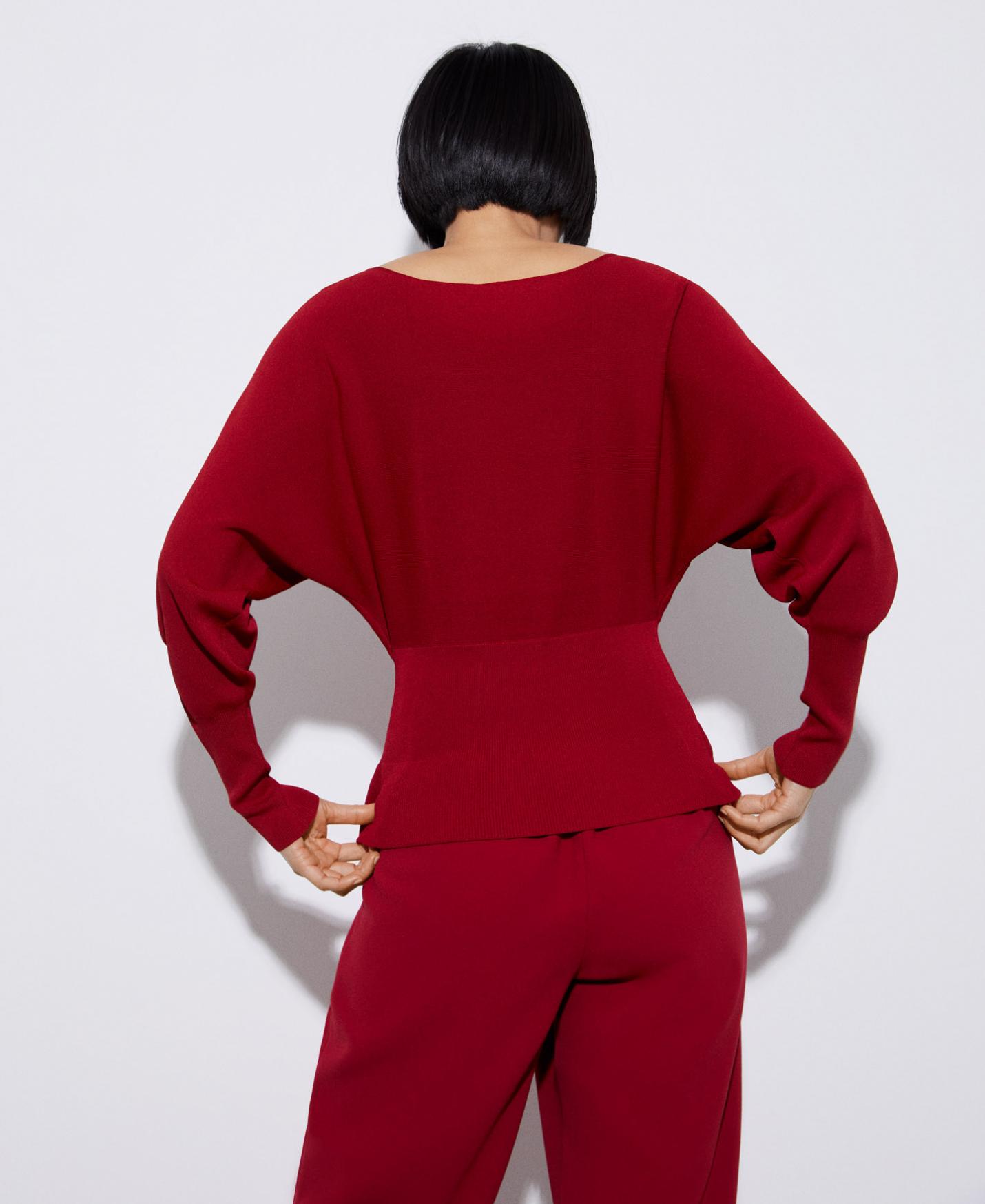 Jersey manga japonesa en viscosa. Tiene escote barco, frunce en cintura, Remates en rib.