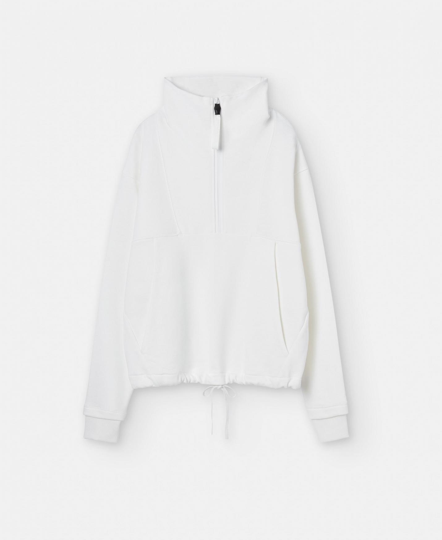 Sudadera de cremallera en algodón responsable. Tiene cuello alto, bolsillos delanteros aspecto canguro, bajo regulable y rib en puños.
