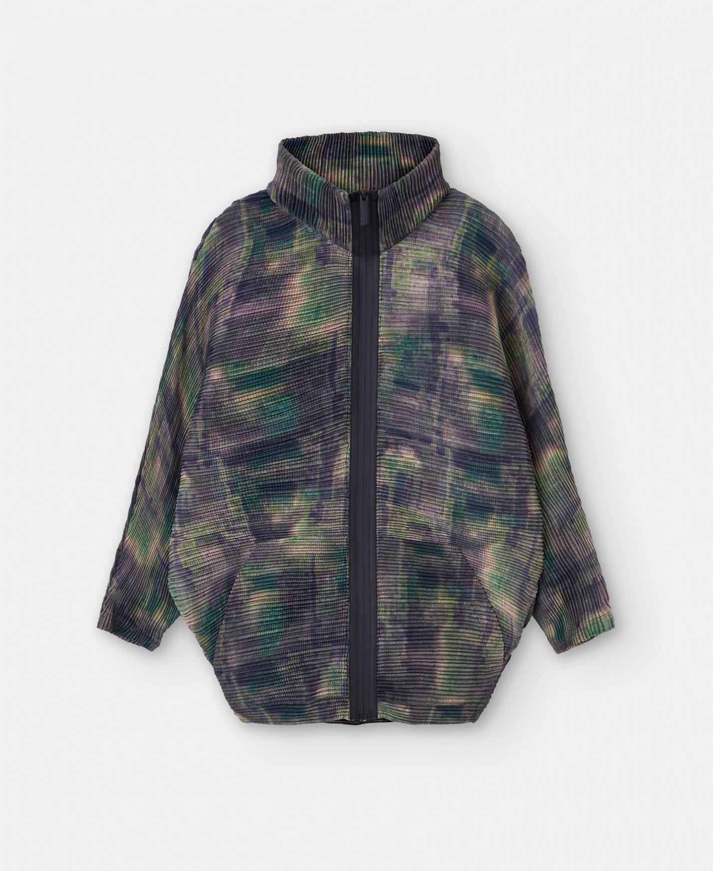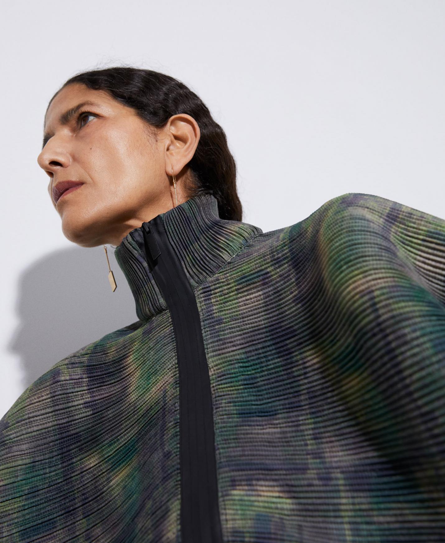 Sudadera crinkle confeccionada en poliéster convencional y poliéster reciclado. Con estampado de autor; el motivo pertenece a la colección Zeitgeist. Tiene cuello cisne, manga japonesa, cierre cremallera y bolsillos canguro.