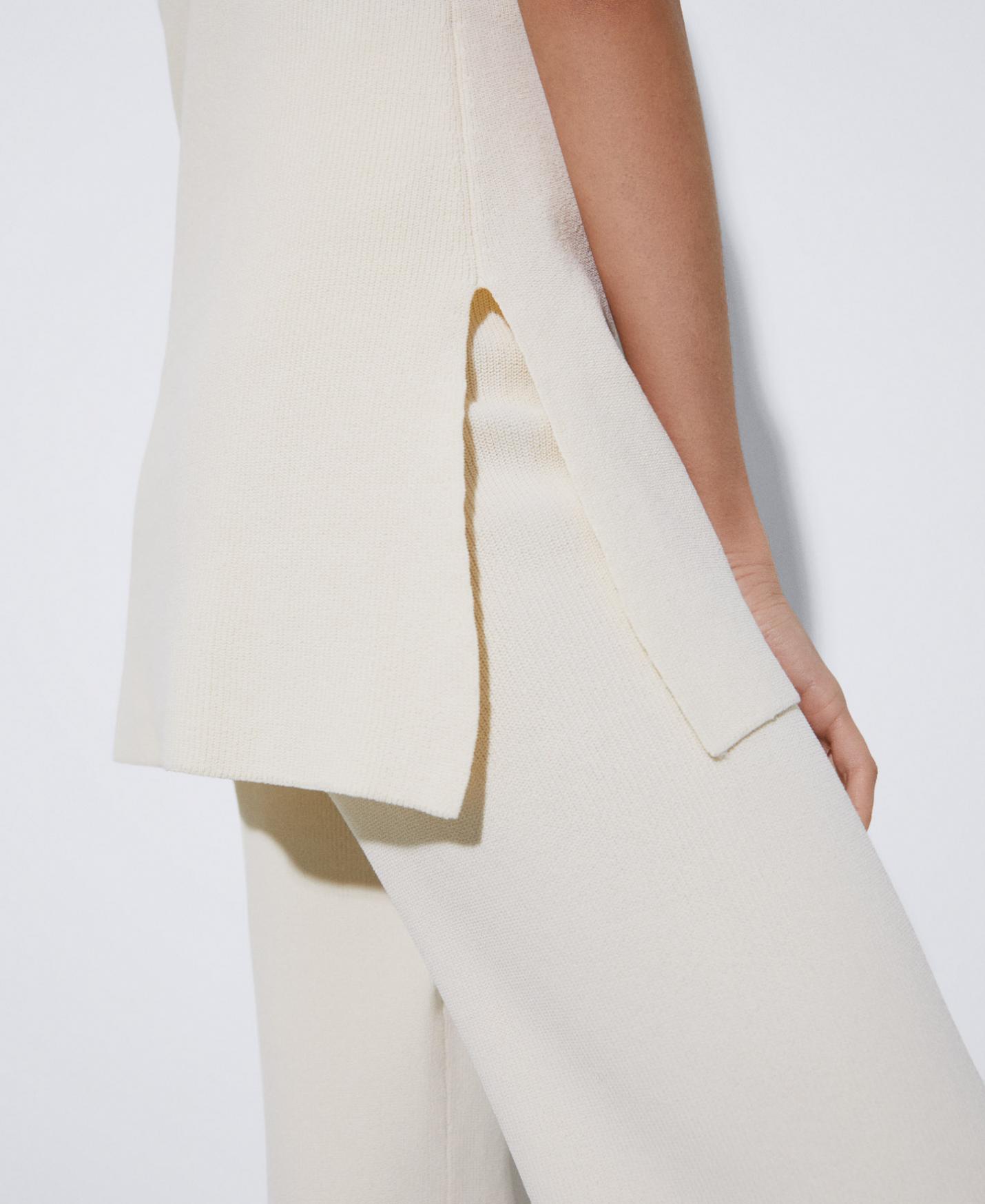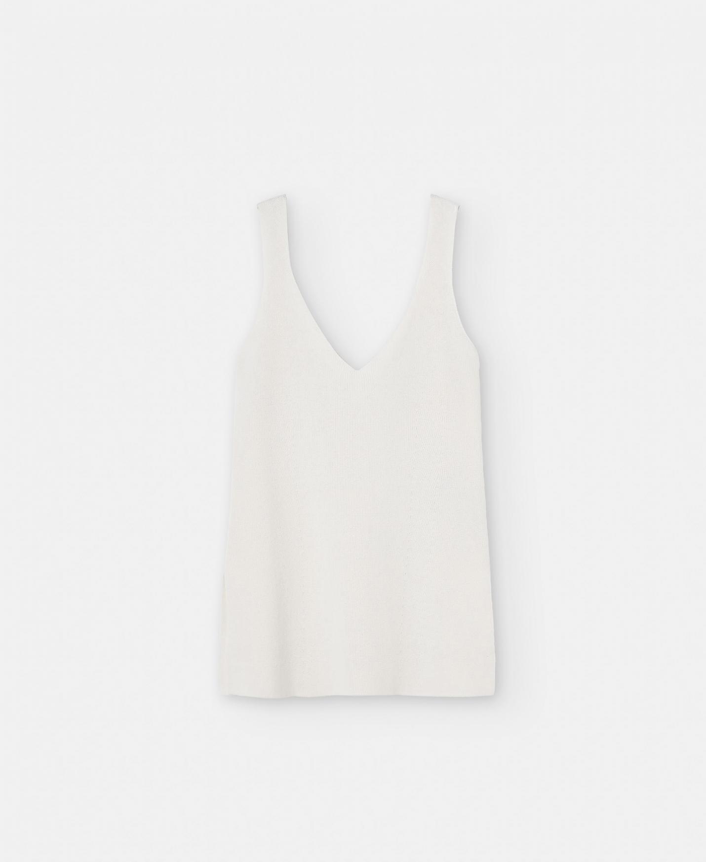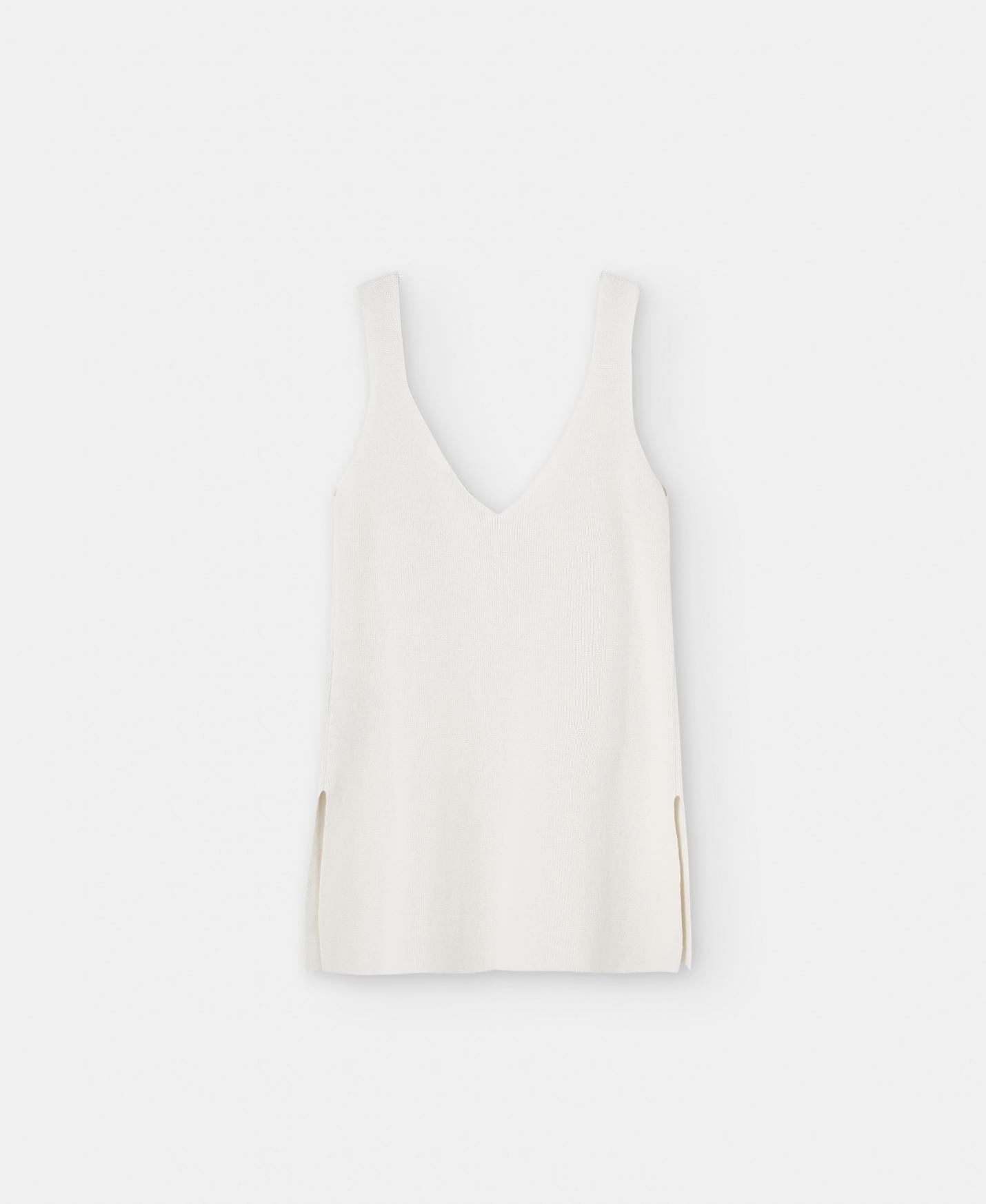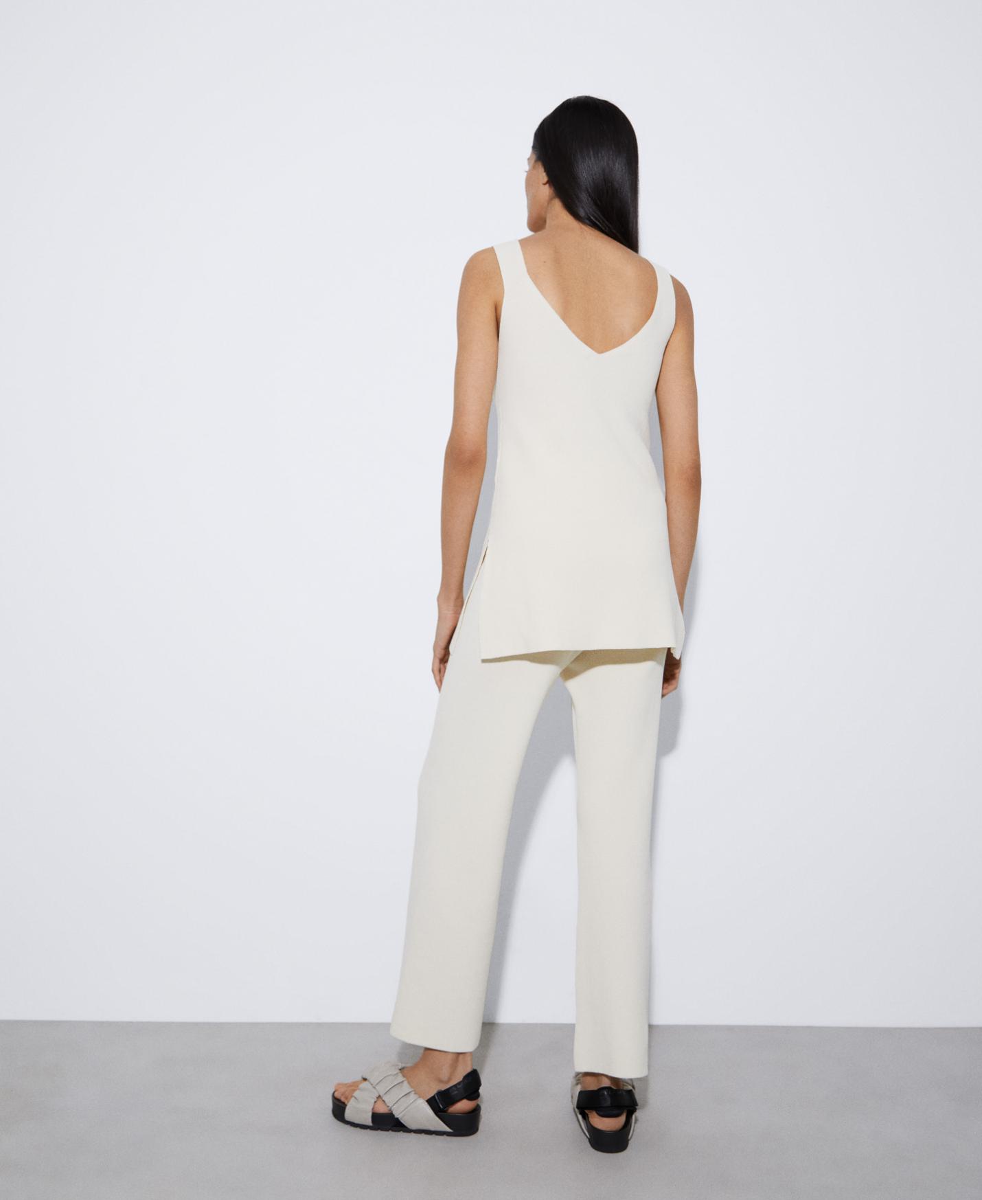 Top de tirantes en punto inglés de nylon y algodón. Escote pico, aspecto rafia.