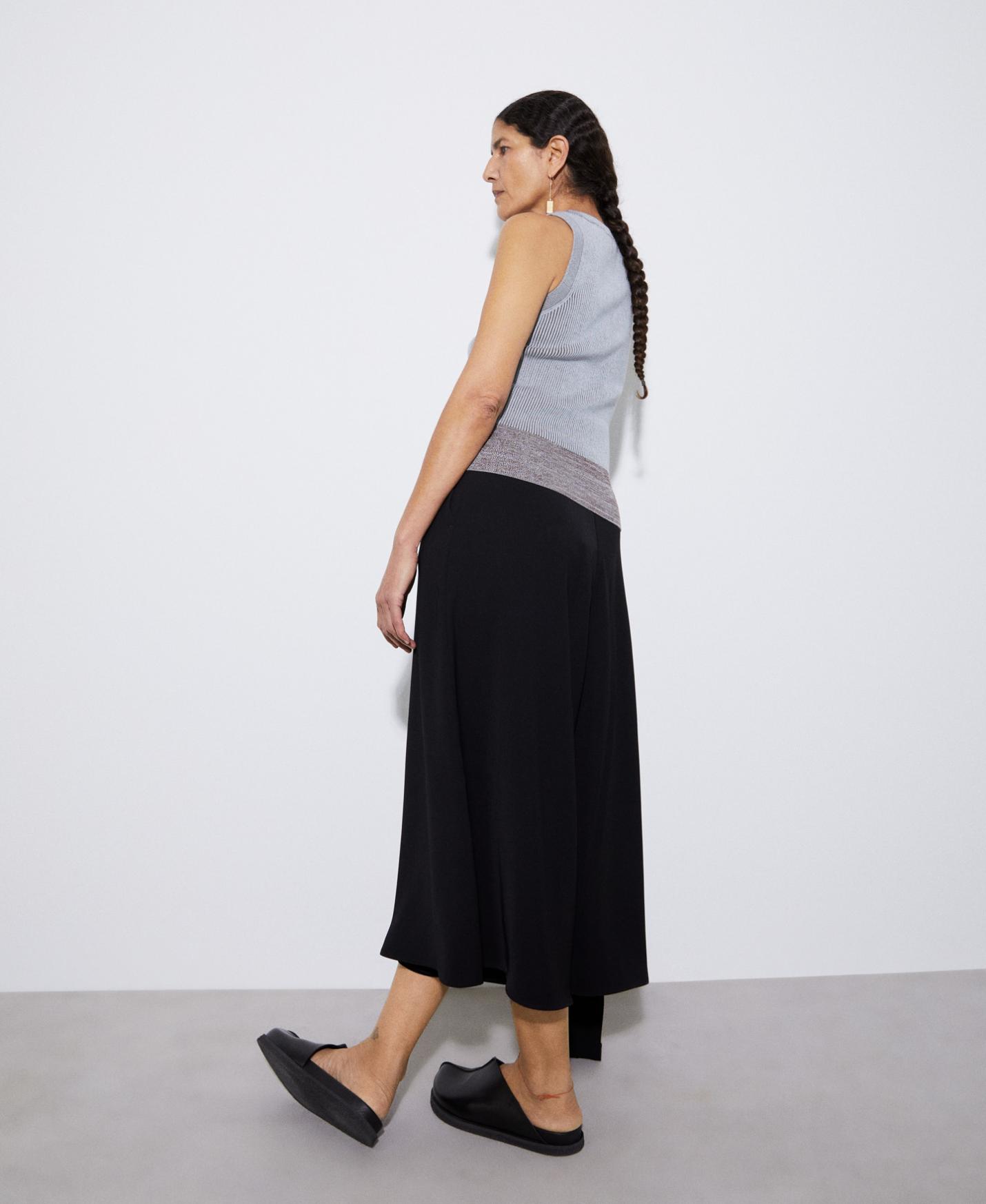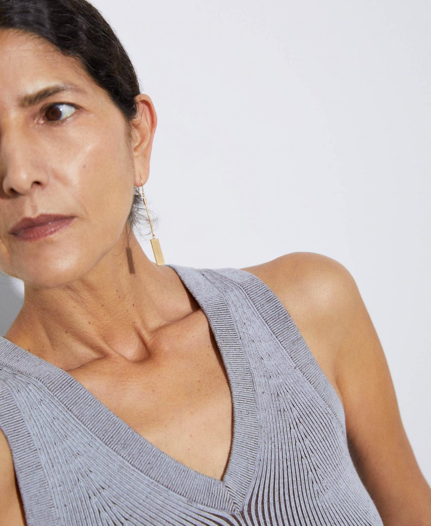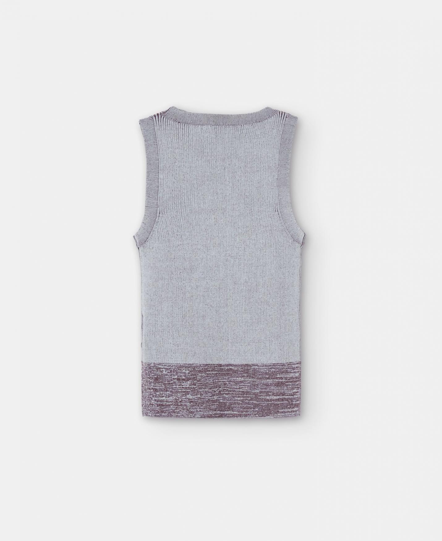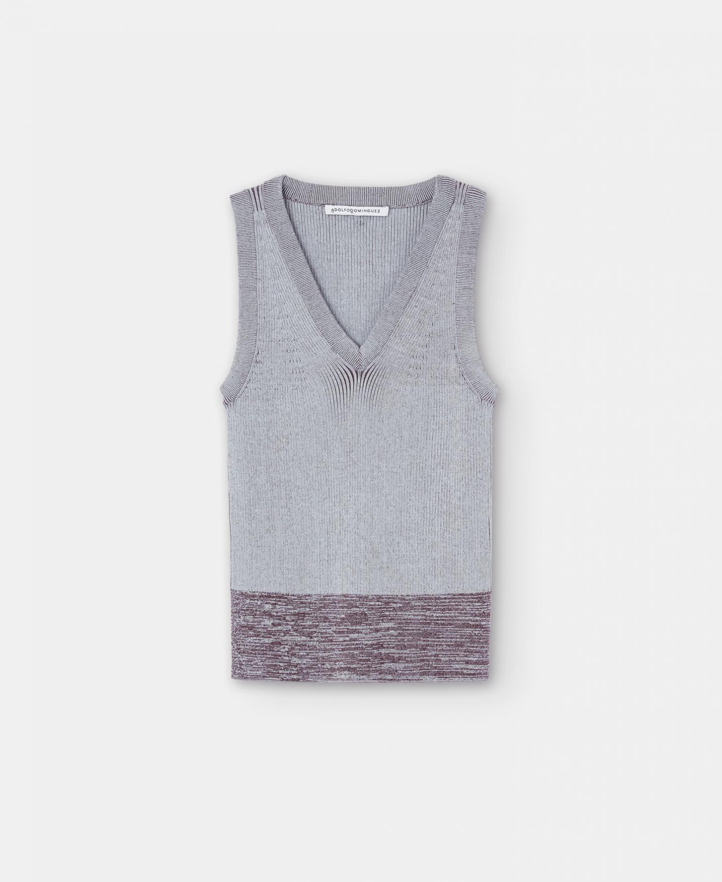Top en viscosa y poliéster. En punto vanisado con menguados en delantero y manga sisa.