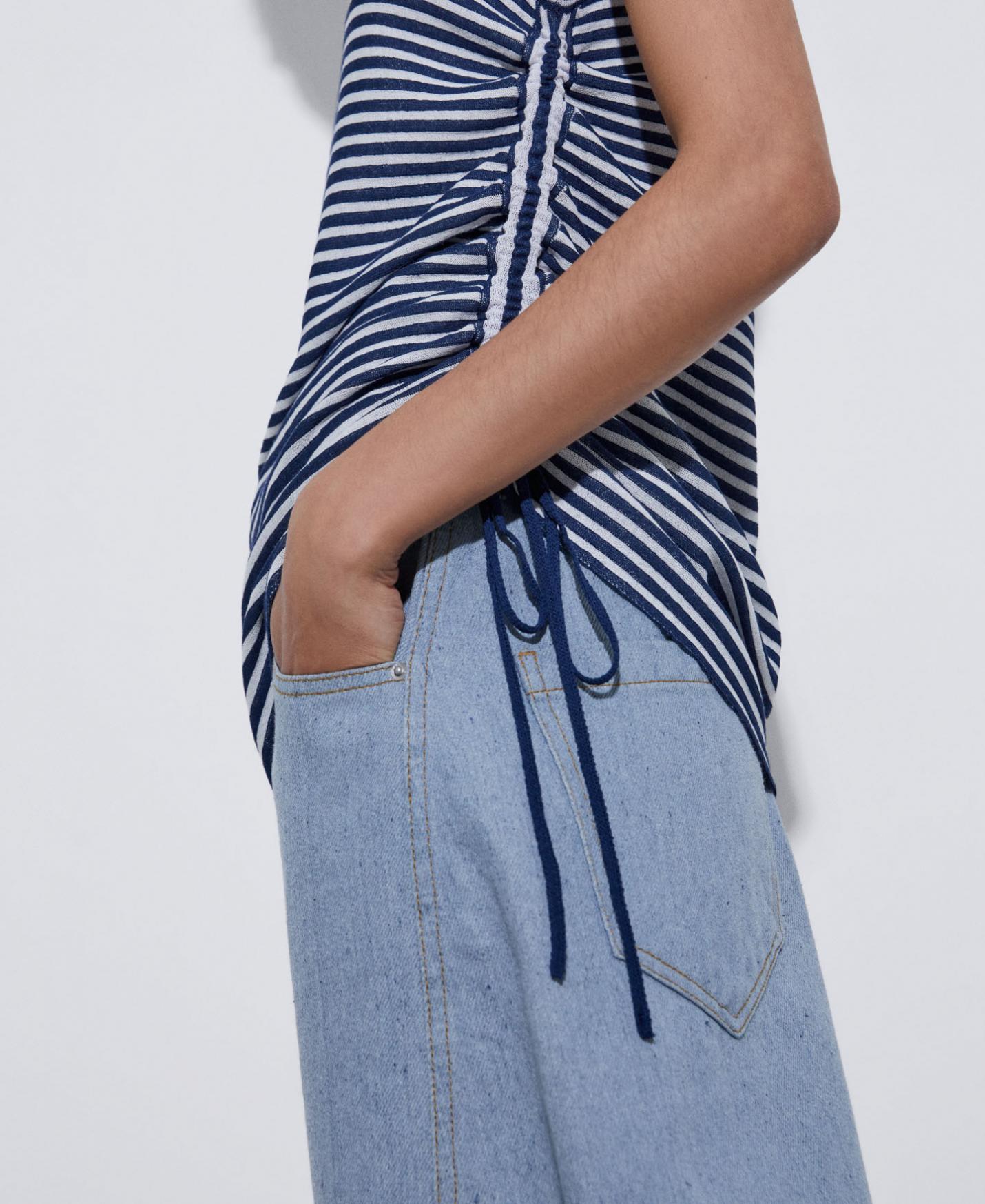 Top de rayas en punto de viscosa. Doble frontura. Frunce en lateral.