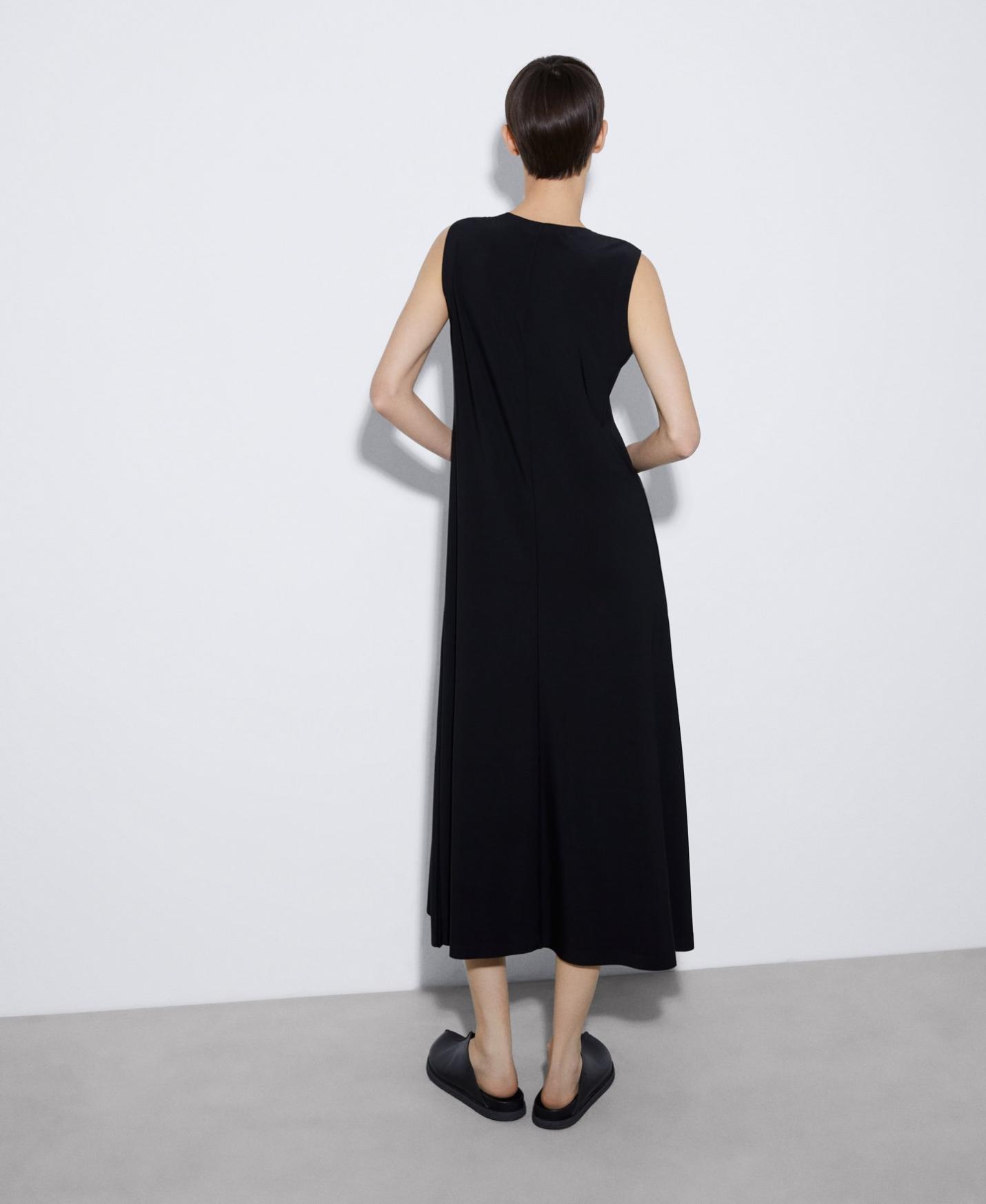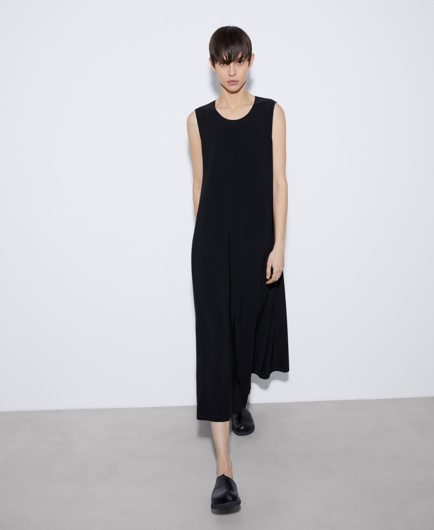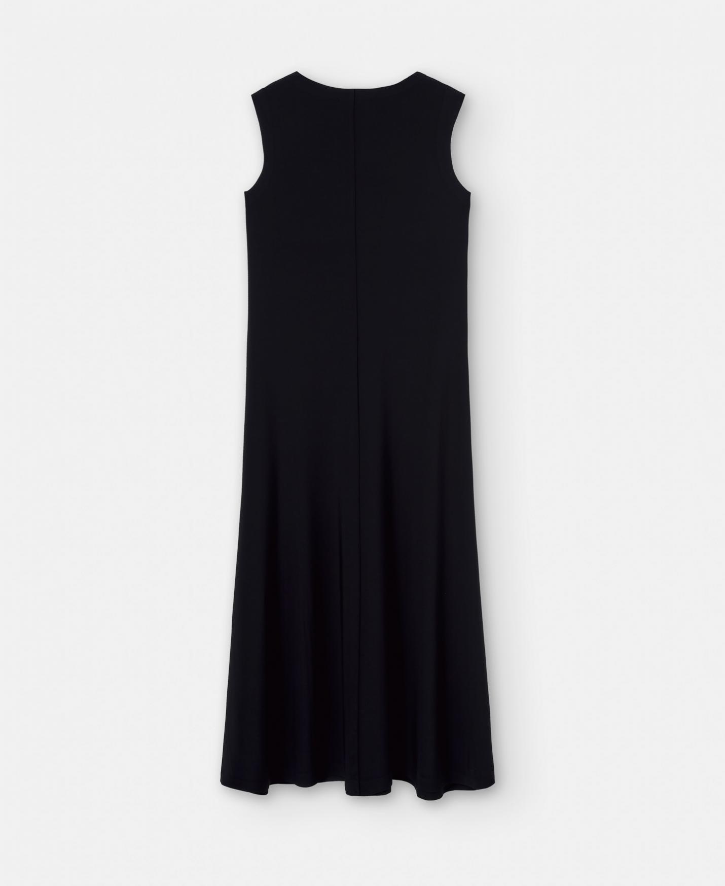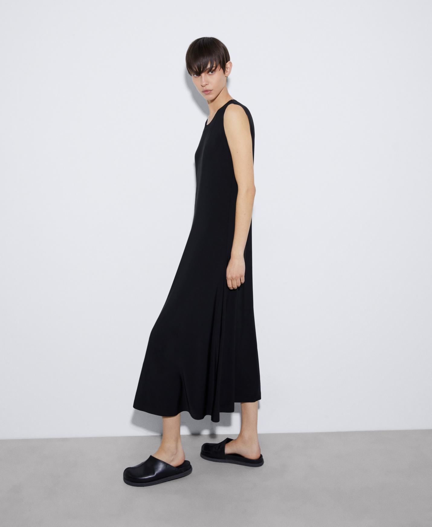 Vestido largo de punto. Caída fluida, escote caja, y manga sisa.