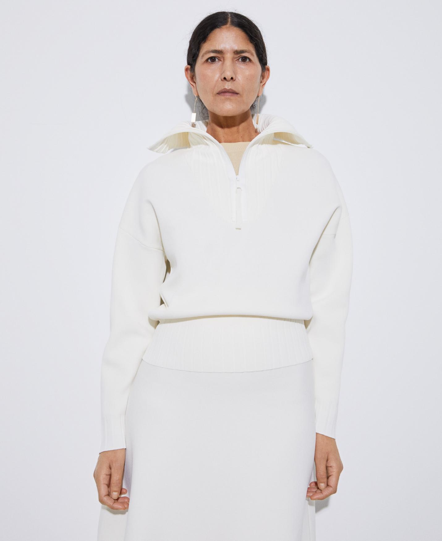 Jersey de manga larga confeccionado en un algodón high twist color azul marino con estructura. Cuello redondo, puños y bajo rematados con canalé.