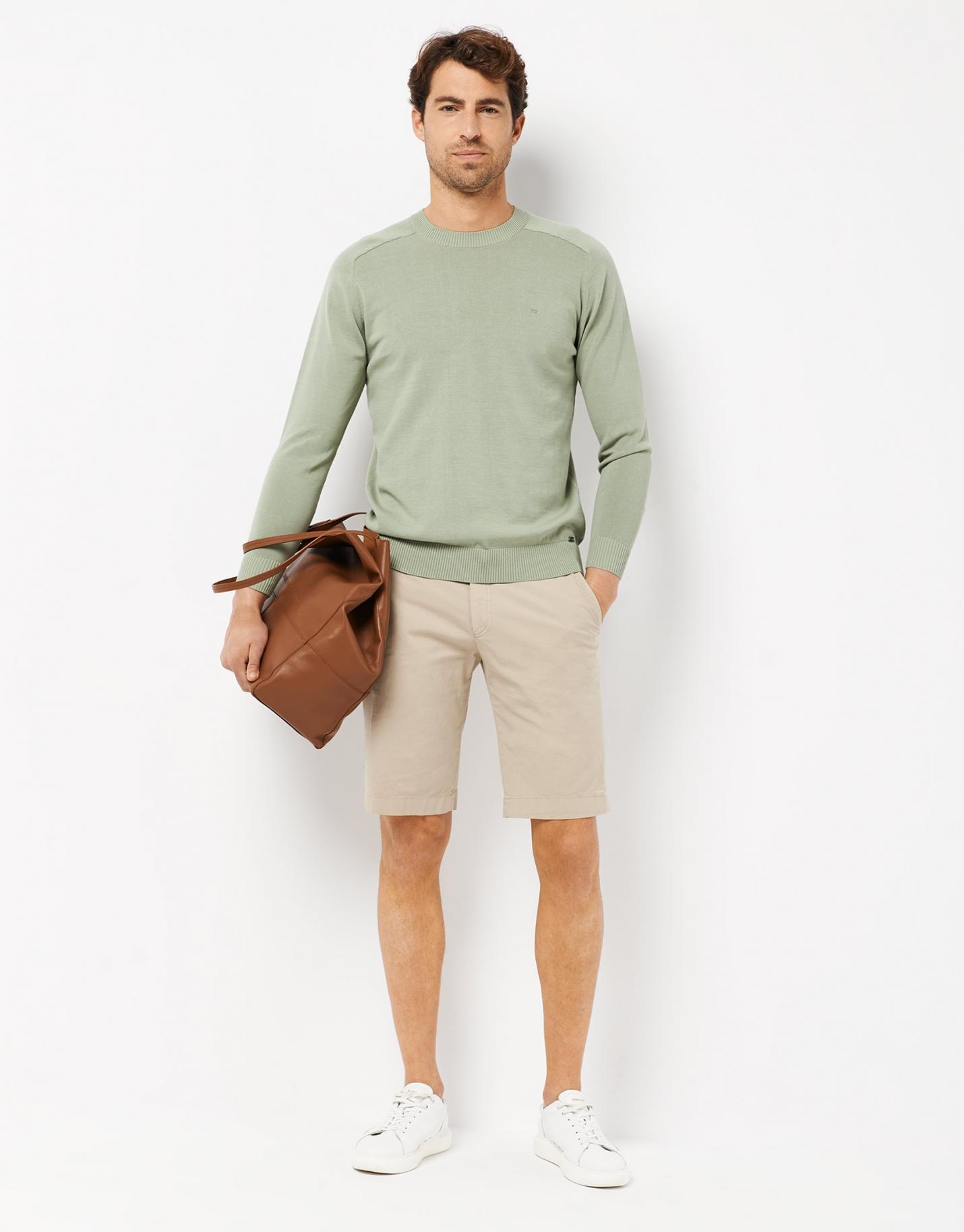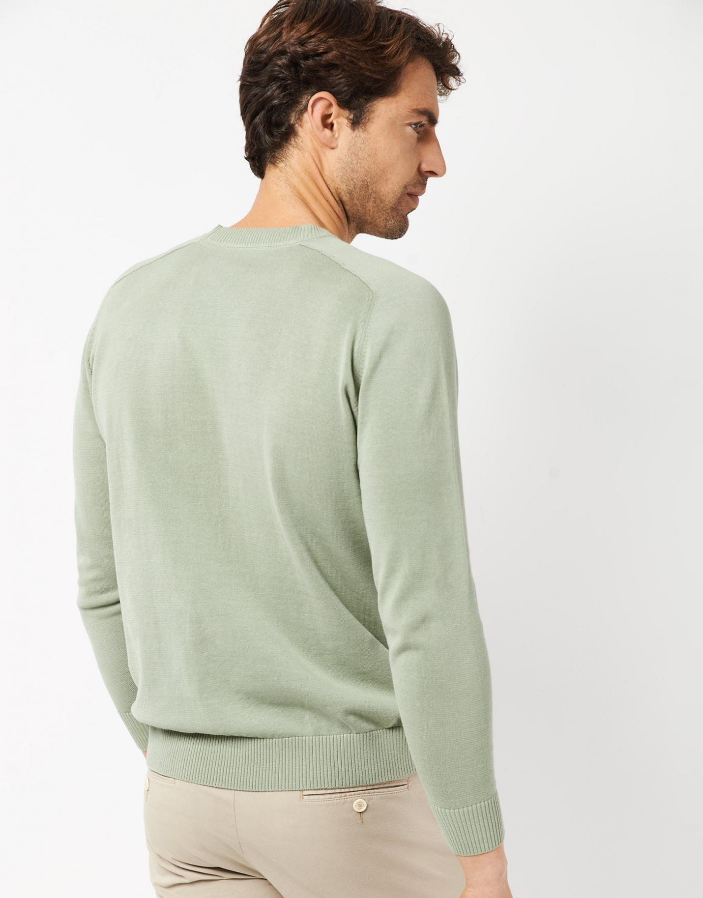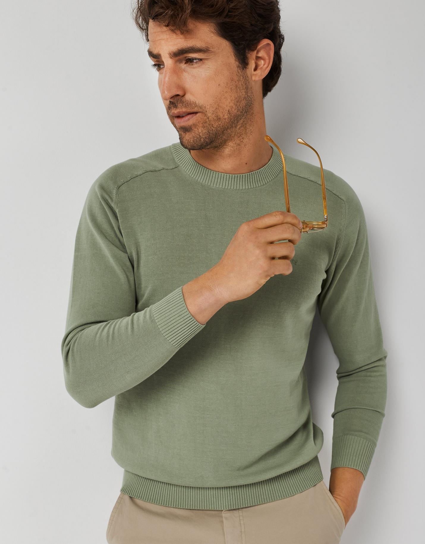 Jersey de manga larga confeccionado en un algodón high twist tintado en color caqui claro. Cuello redondo y manga martillo.