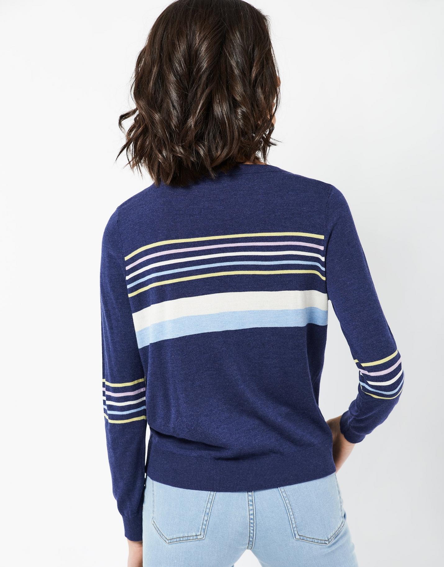 Jersey de manga larga confeccionado en un punto color azul marino con dibujo de rayas de varios colores y grosores en …