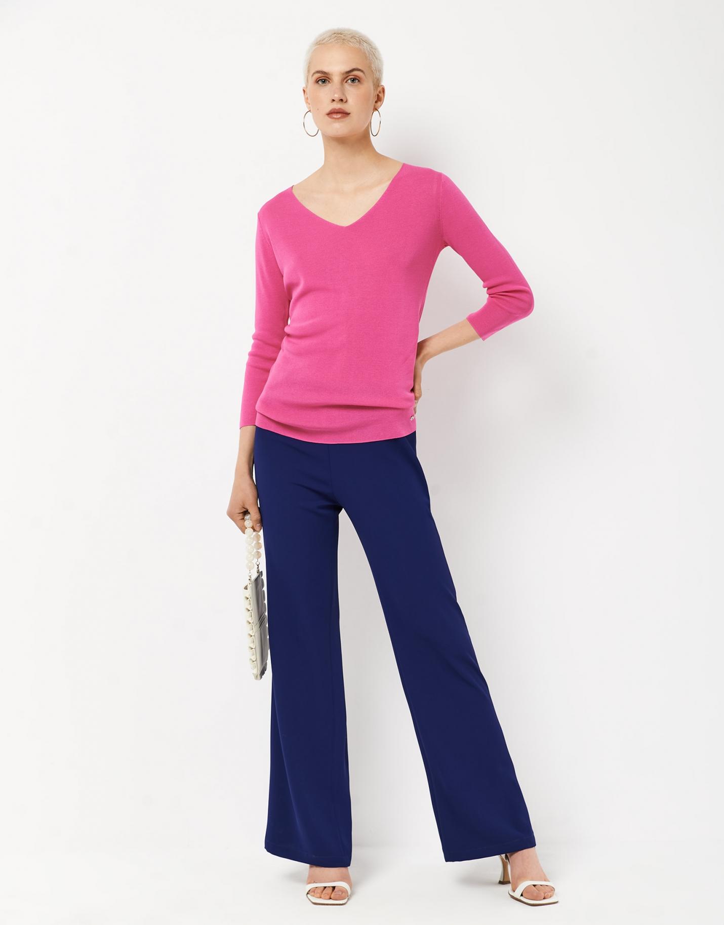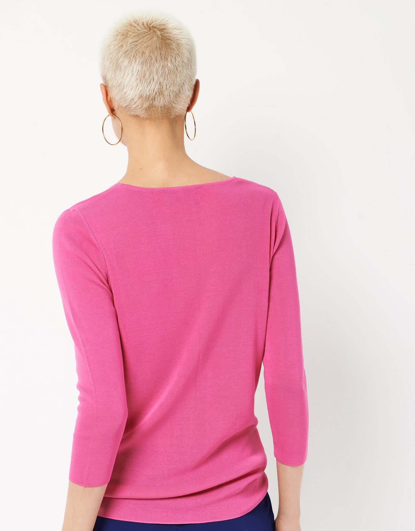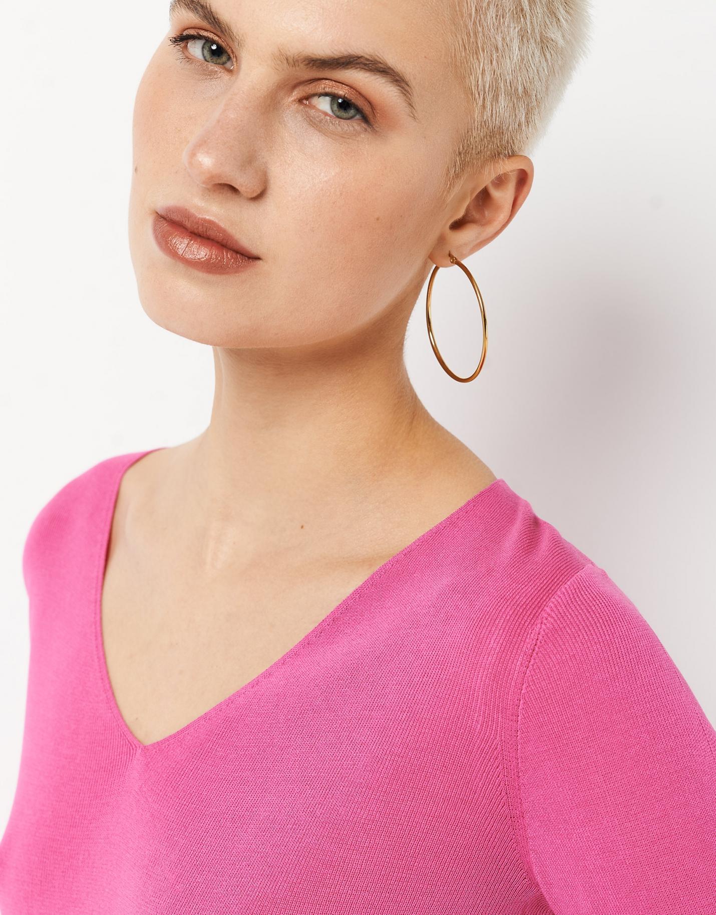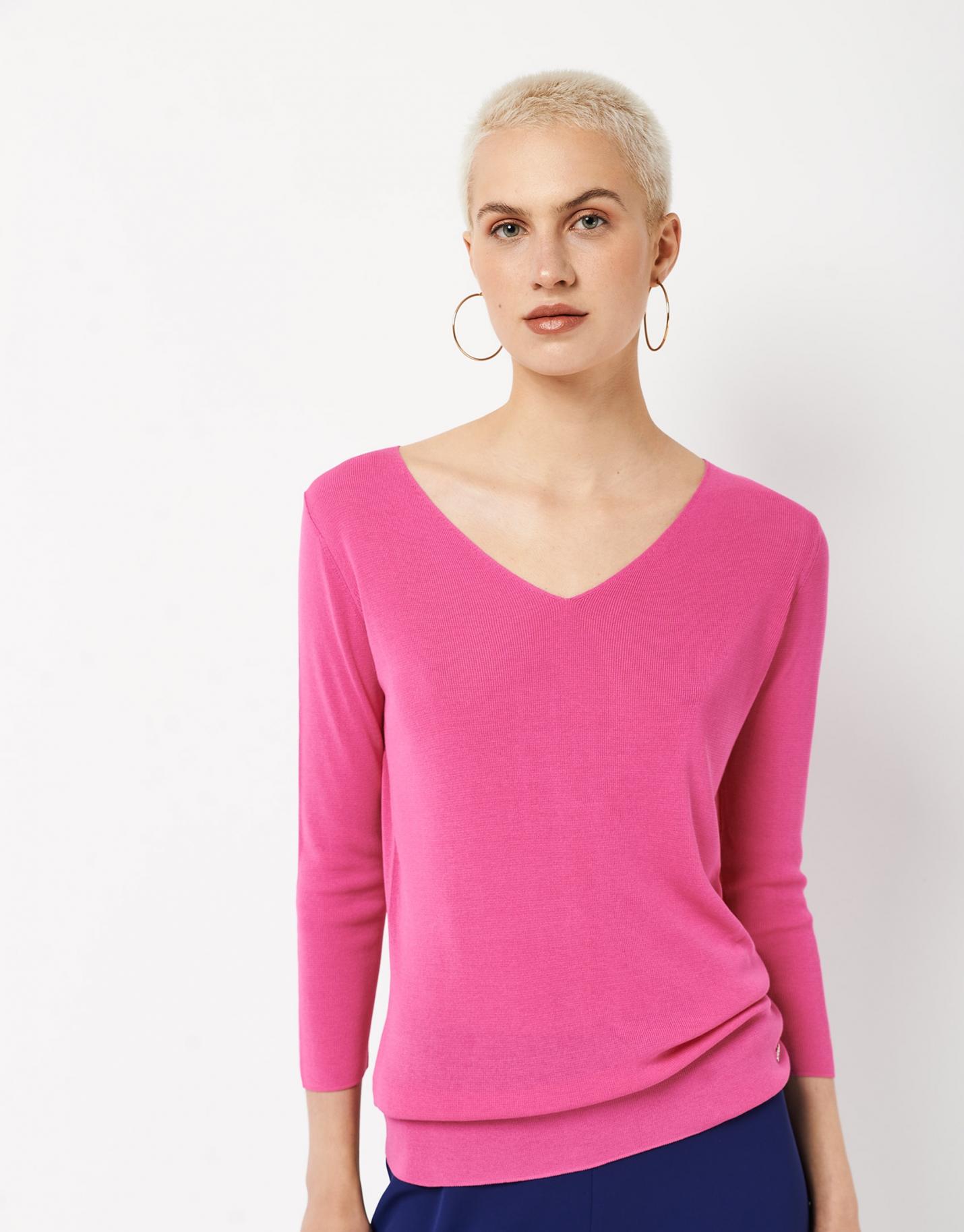 Jersey de manga corta confeccionado en un punto fino color rosa con escote pico.