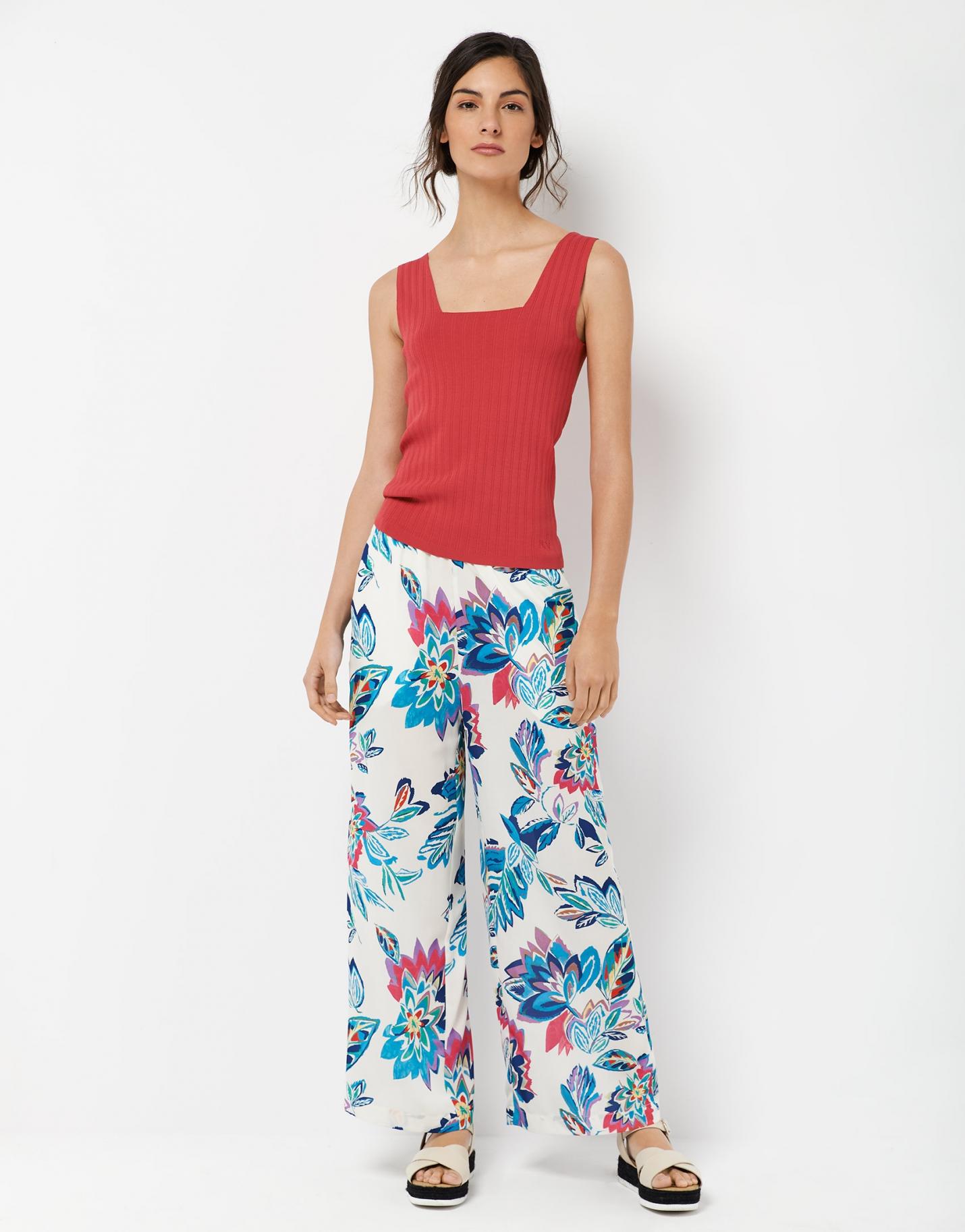 Top de sisa ancha confeccionado en un punto acanalado color rojo con escote cuadrado. …