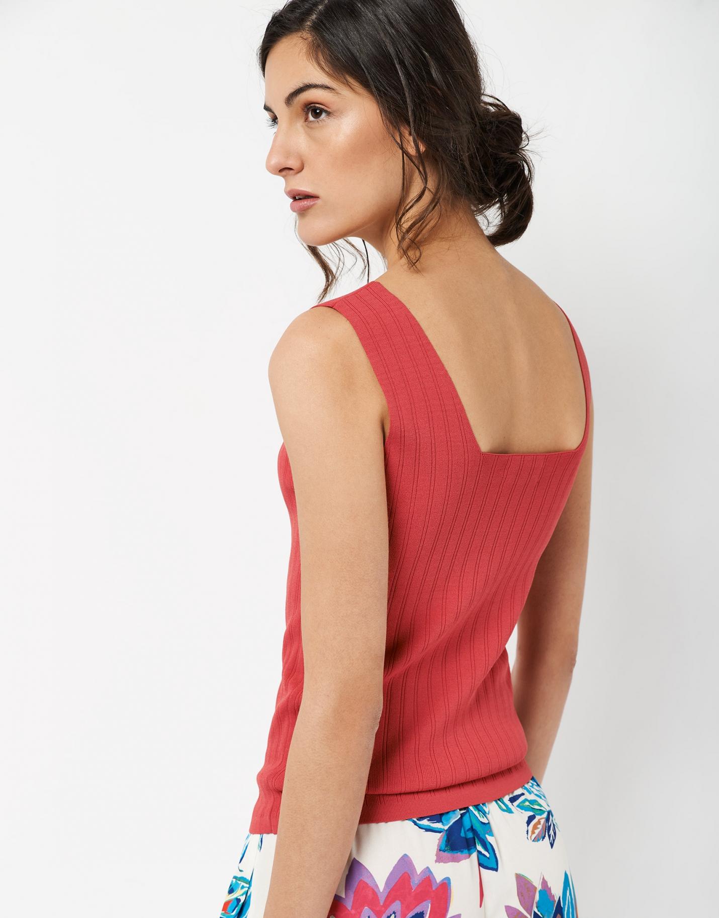 Top de sisa ancha confeccionado en un punto acanalado color rojo con escote cuadrado.