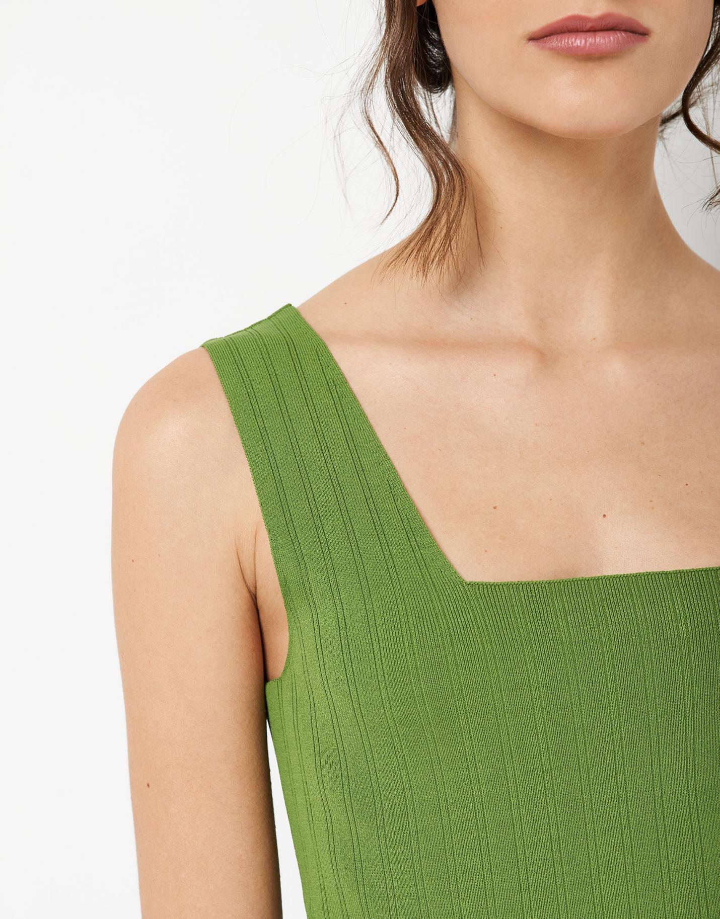 Top de sisa ancha confeccionado en un punto acanalado color verde con escote cuadrado.