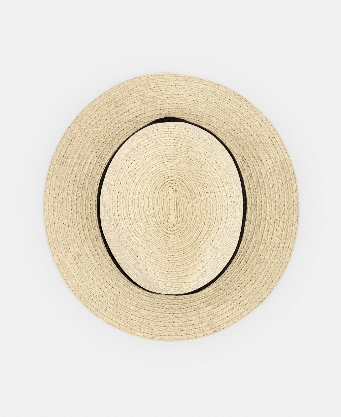 Sombrero en papel responsable con cinta de algodón a contraste.