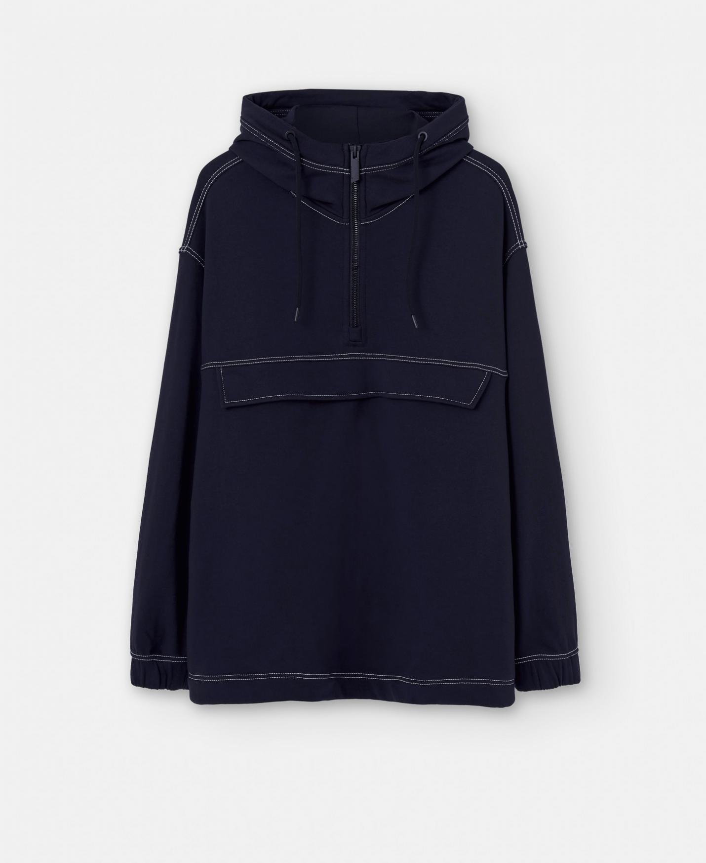 Sudadera canguro en 100% algodón orgánico. Con capucha, pespuntes a contraste, un bolsillo frontal con flap y otros dos laterales.
