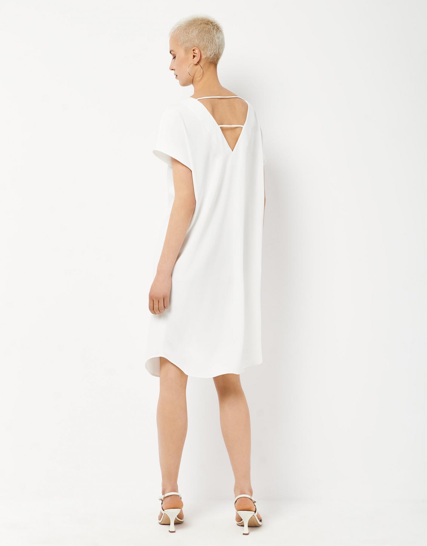 Vestidos Roberto Verino | Vestido Midi Holgado Blanco Con Motivo Floral En Pecho Mujer