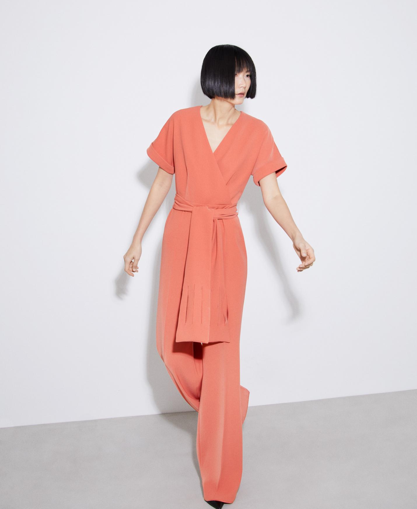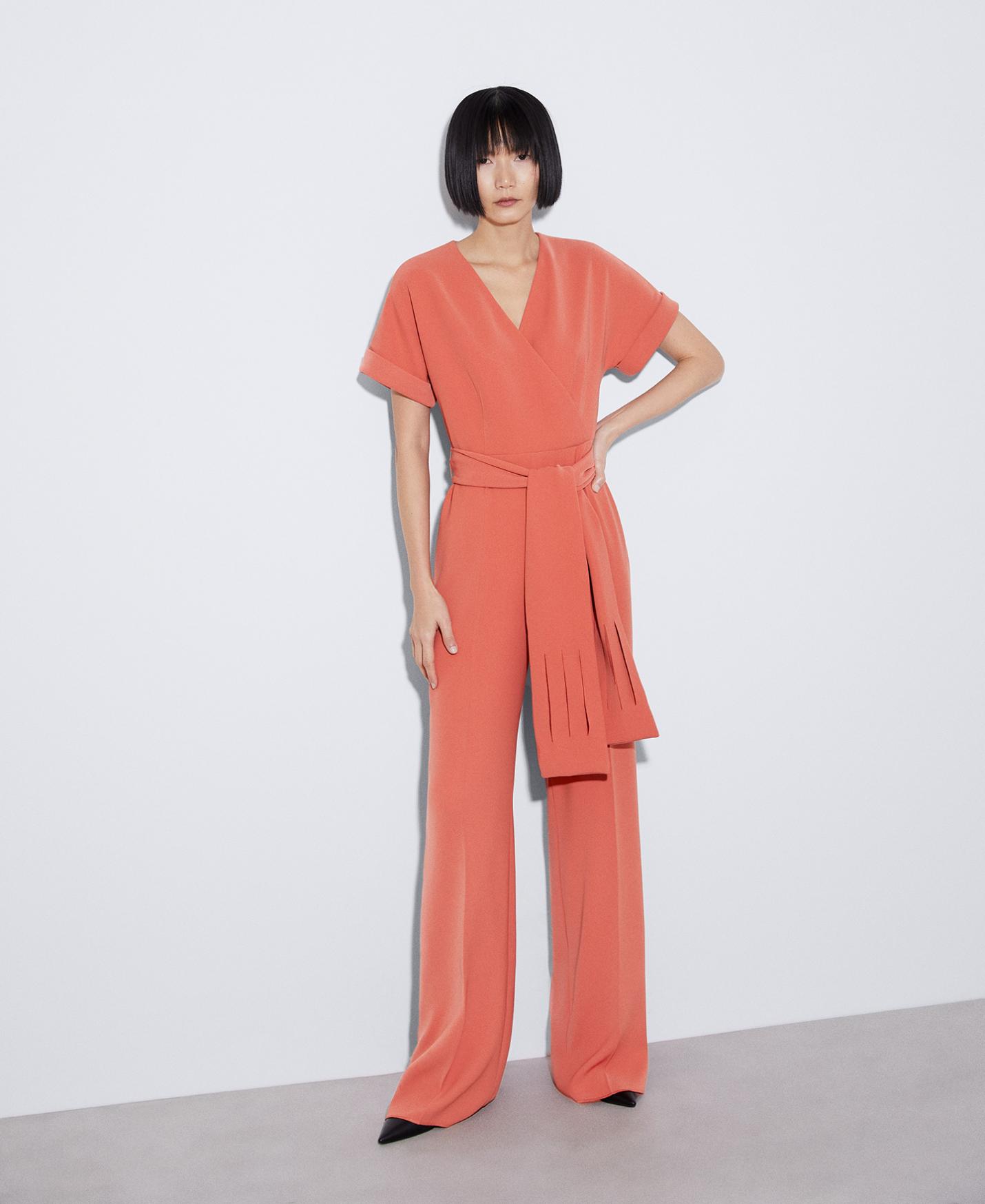 Vestidos y monos Adolfo Dominguez | Mono cruzado en poliéster reciclado Coral Mujer