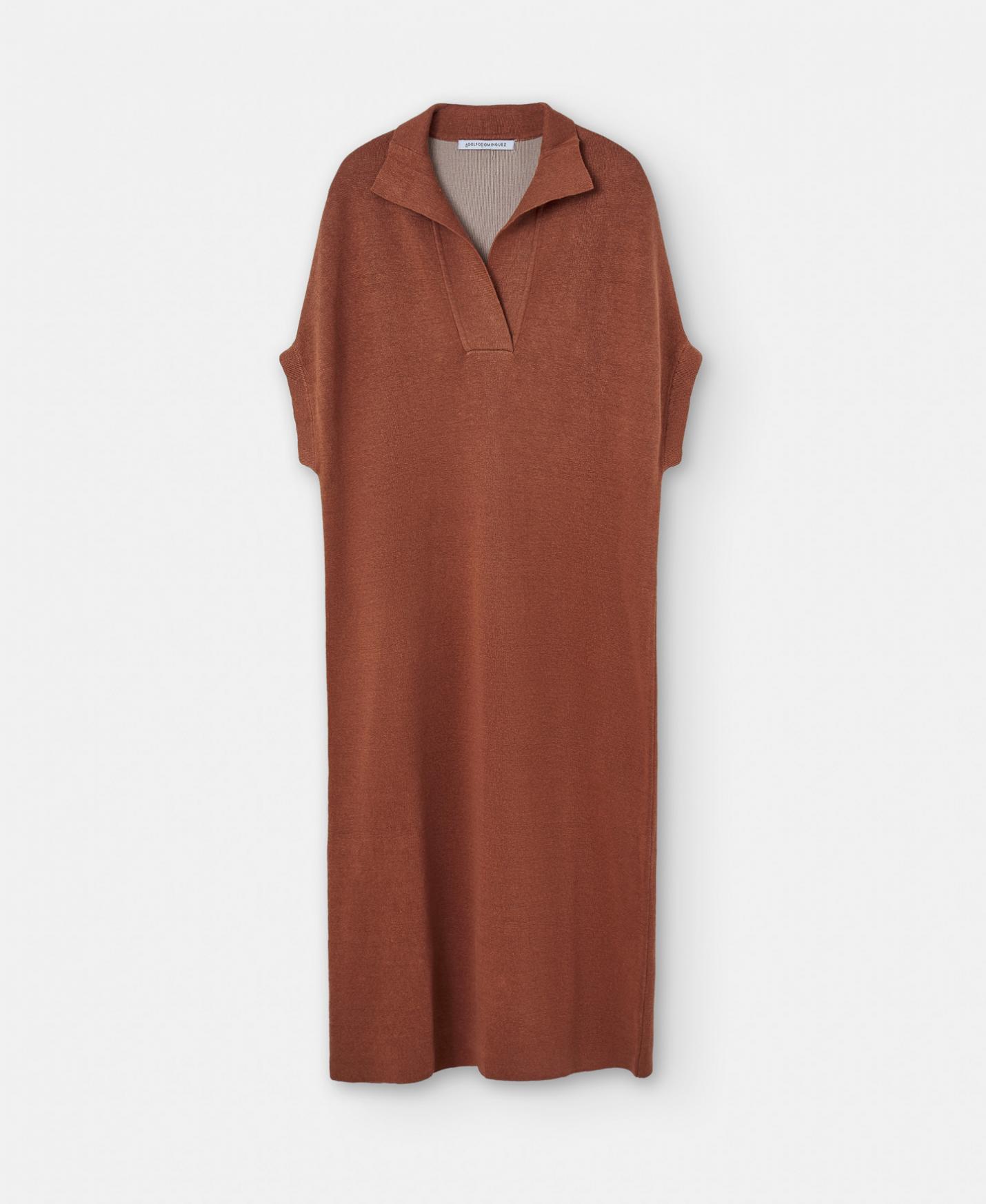 Vestidos y monos Adolfo Dominguez | Vestido camisero doble frontura en lino Tabaco Mujer