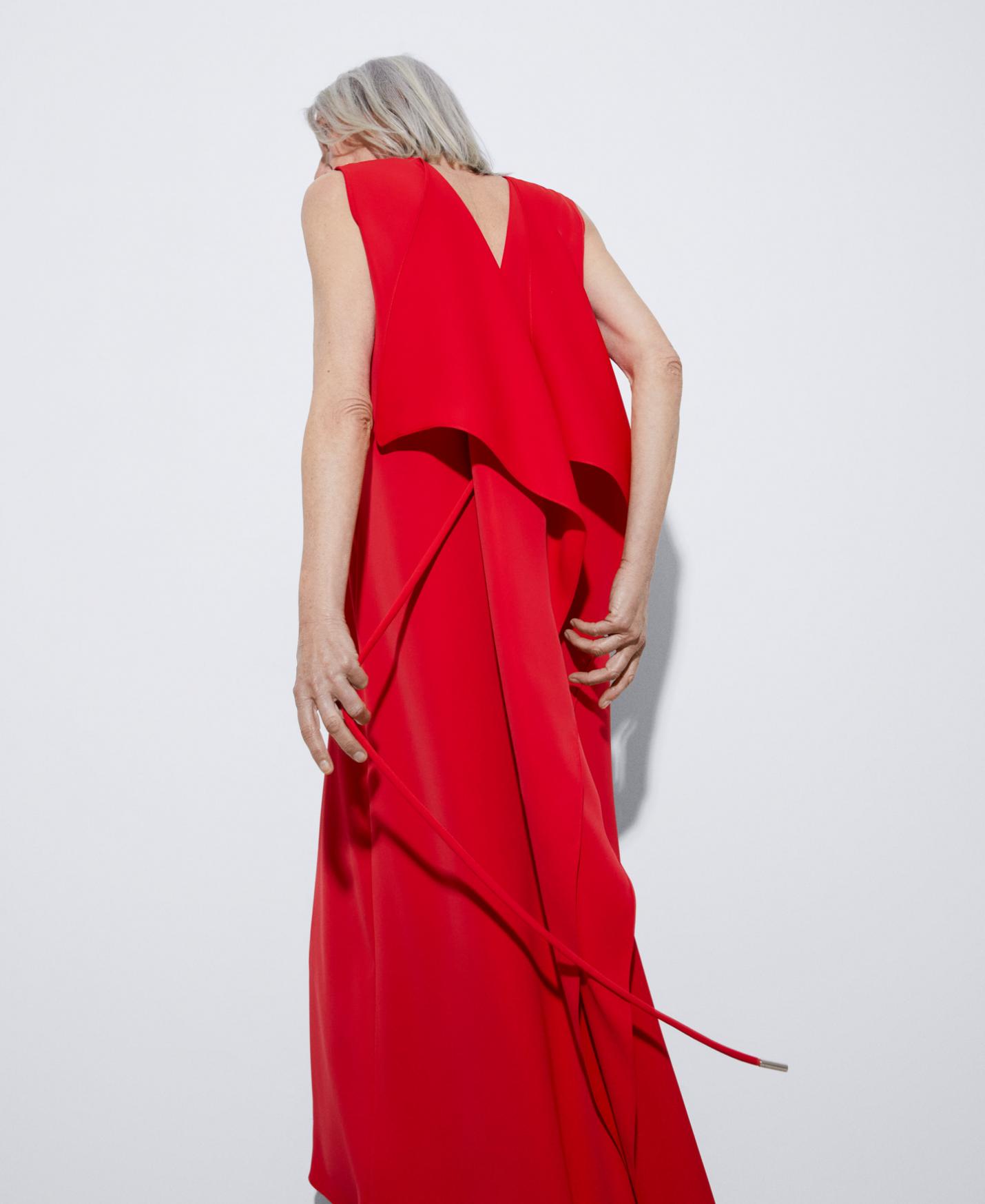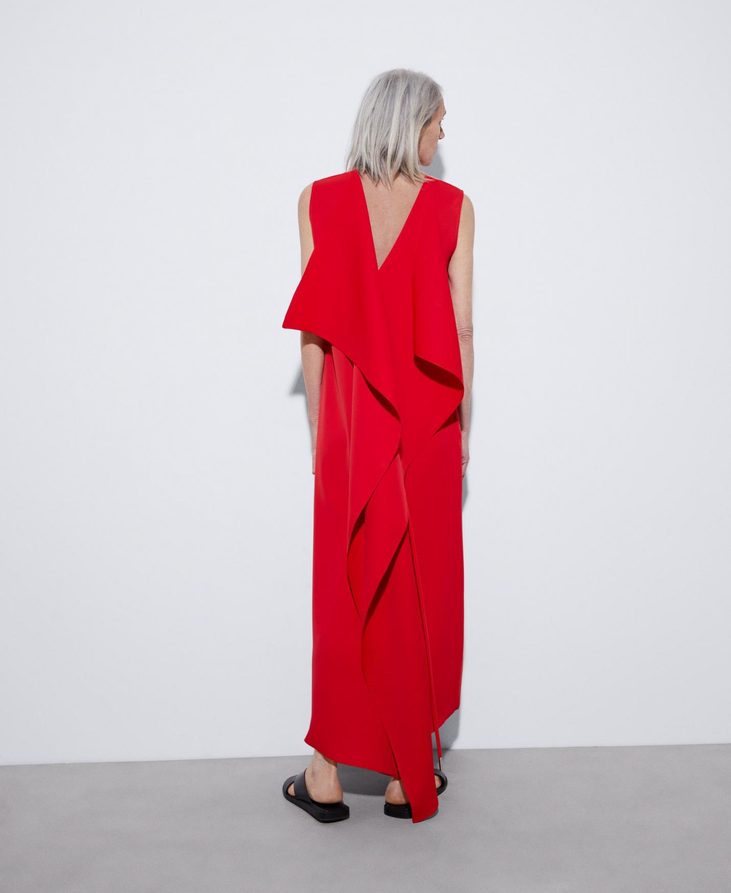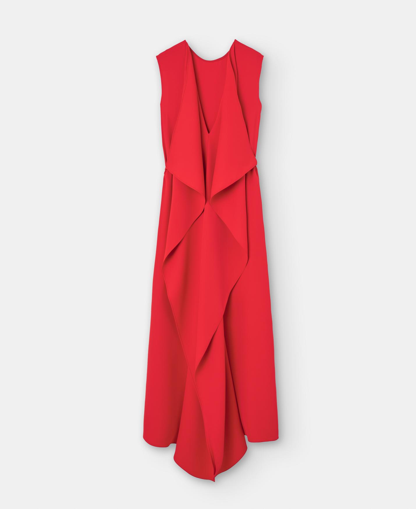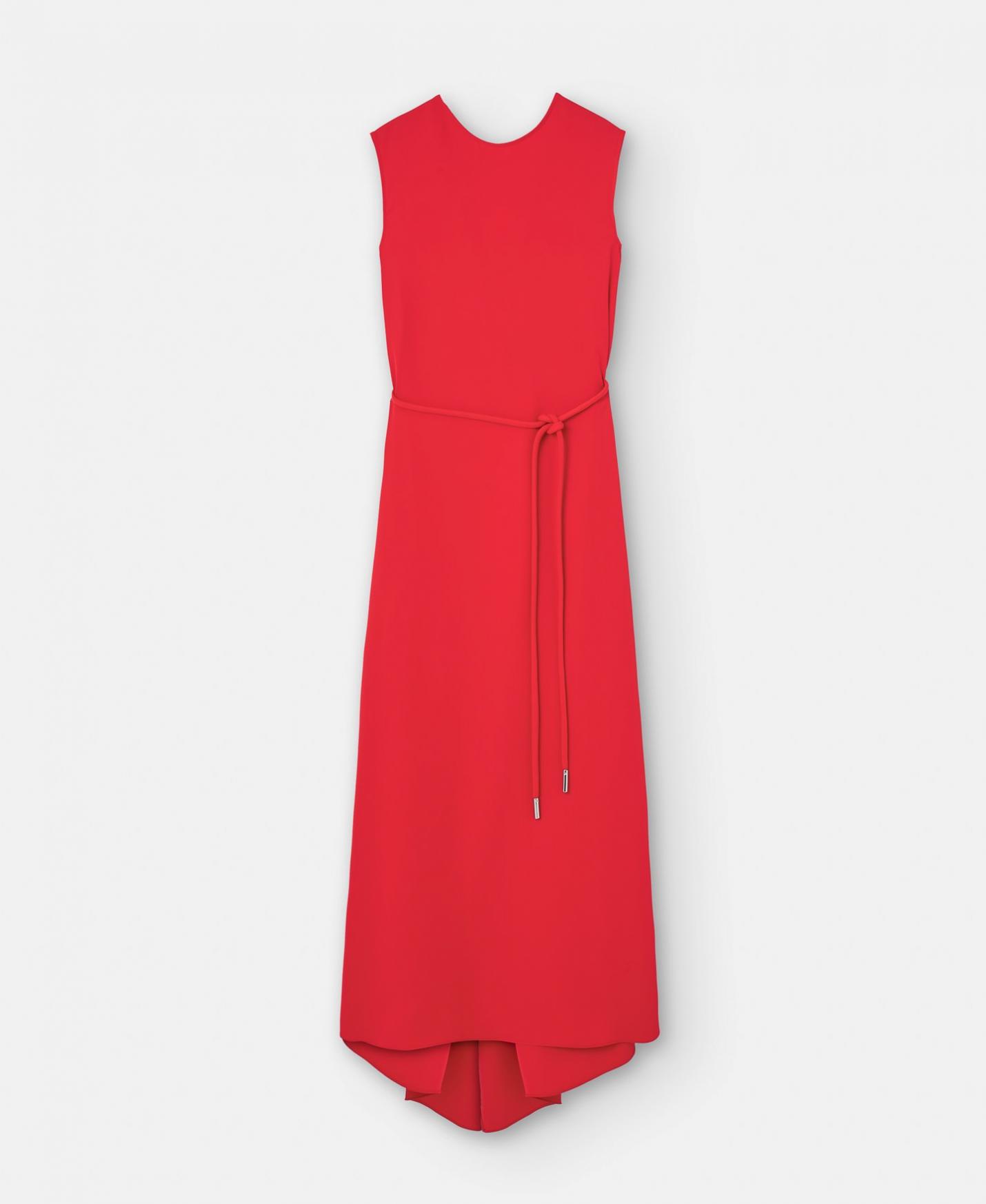 Vestido cóctel largo de línea recta. Tiene cuello redondo, cinturón extraíble y espalda de escote pico y tejido drapeado.