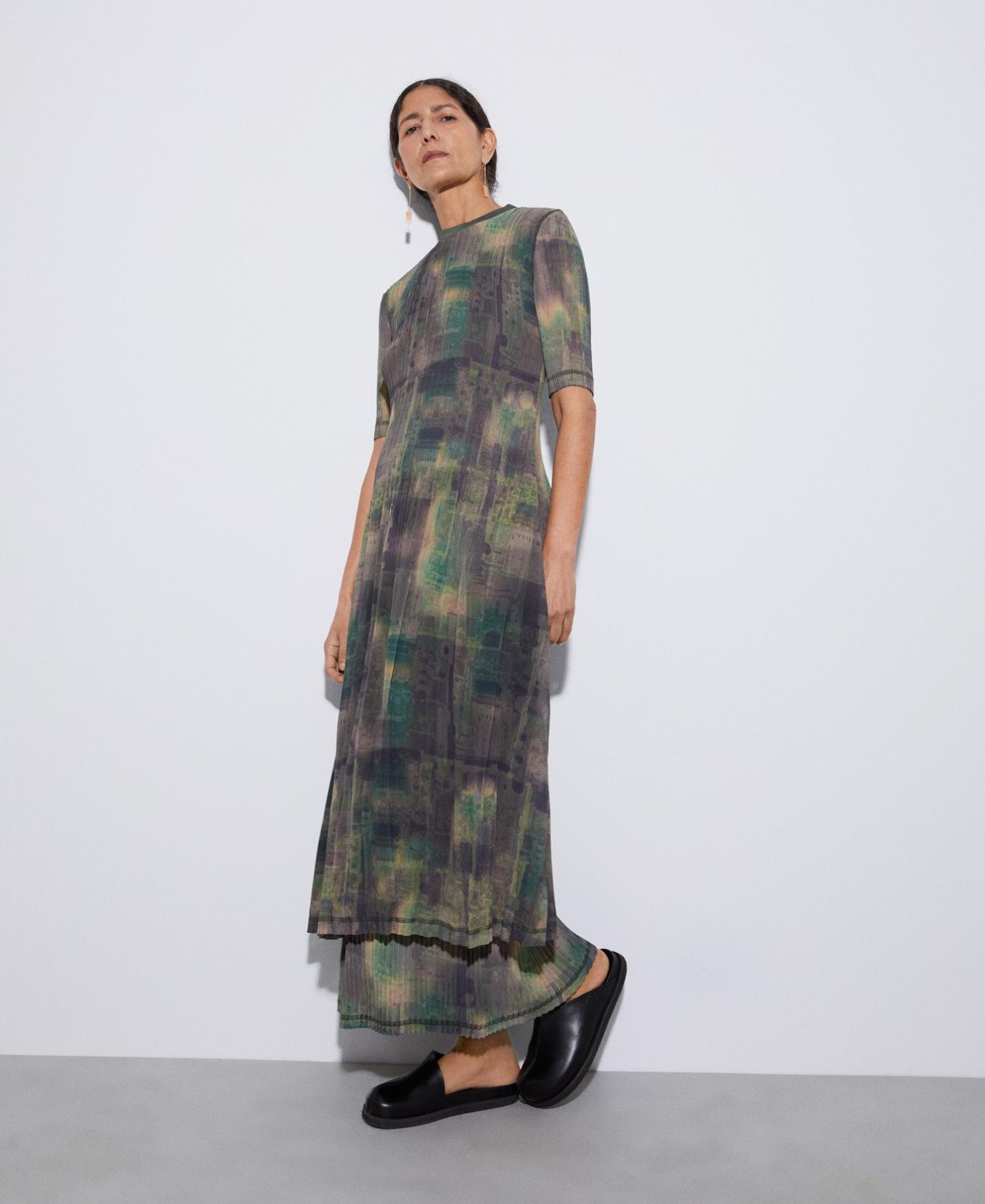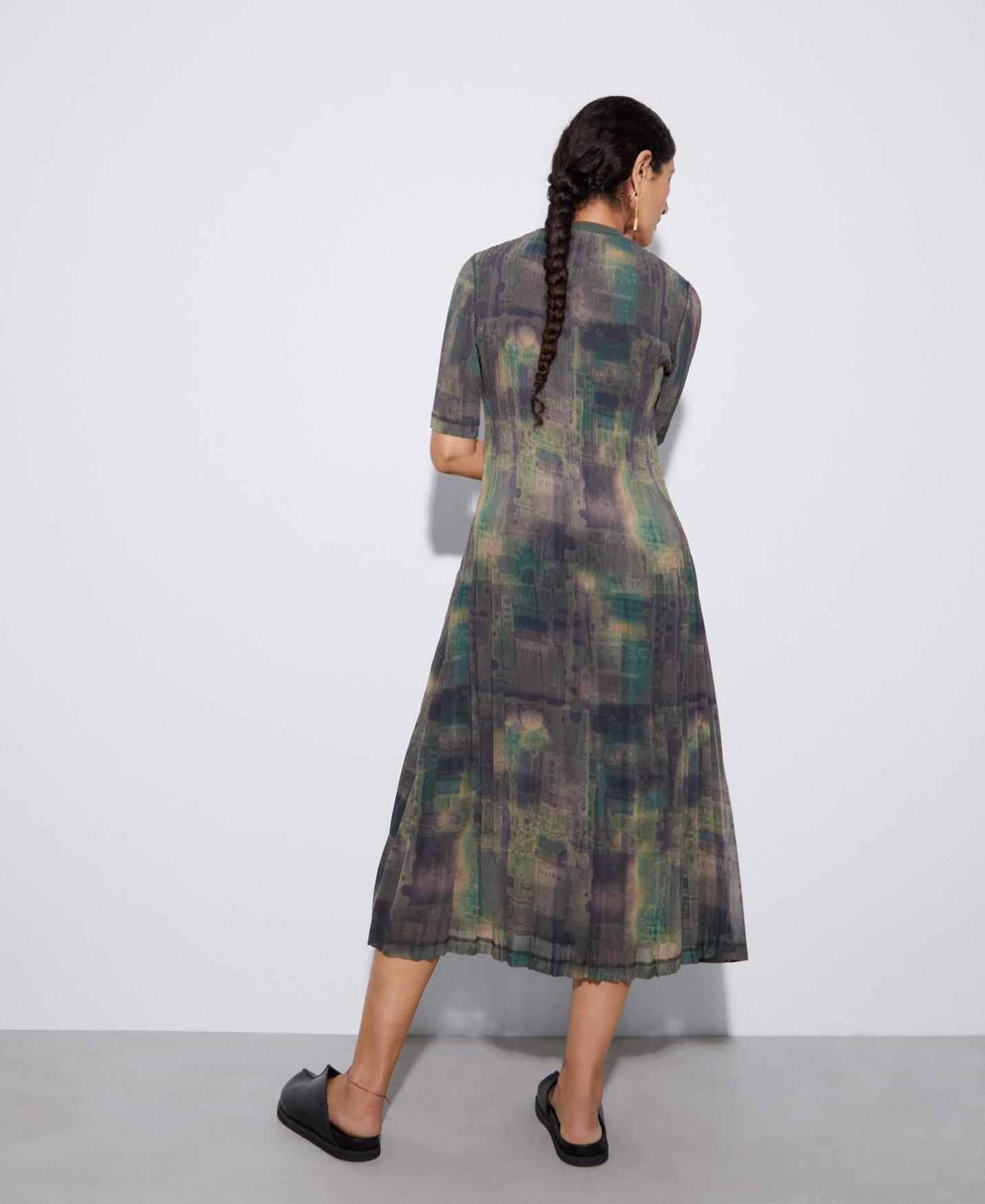 Vestidos y monos Adolfo Dominguez | Vestido crinkle estampado Estampadonegroazulverdebla Mujer