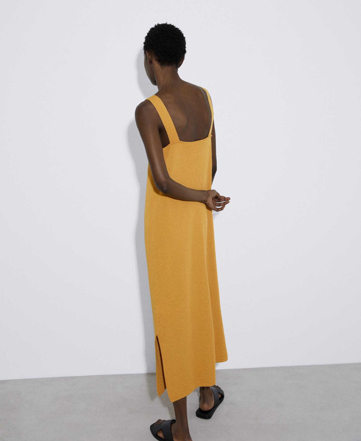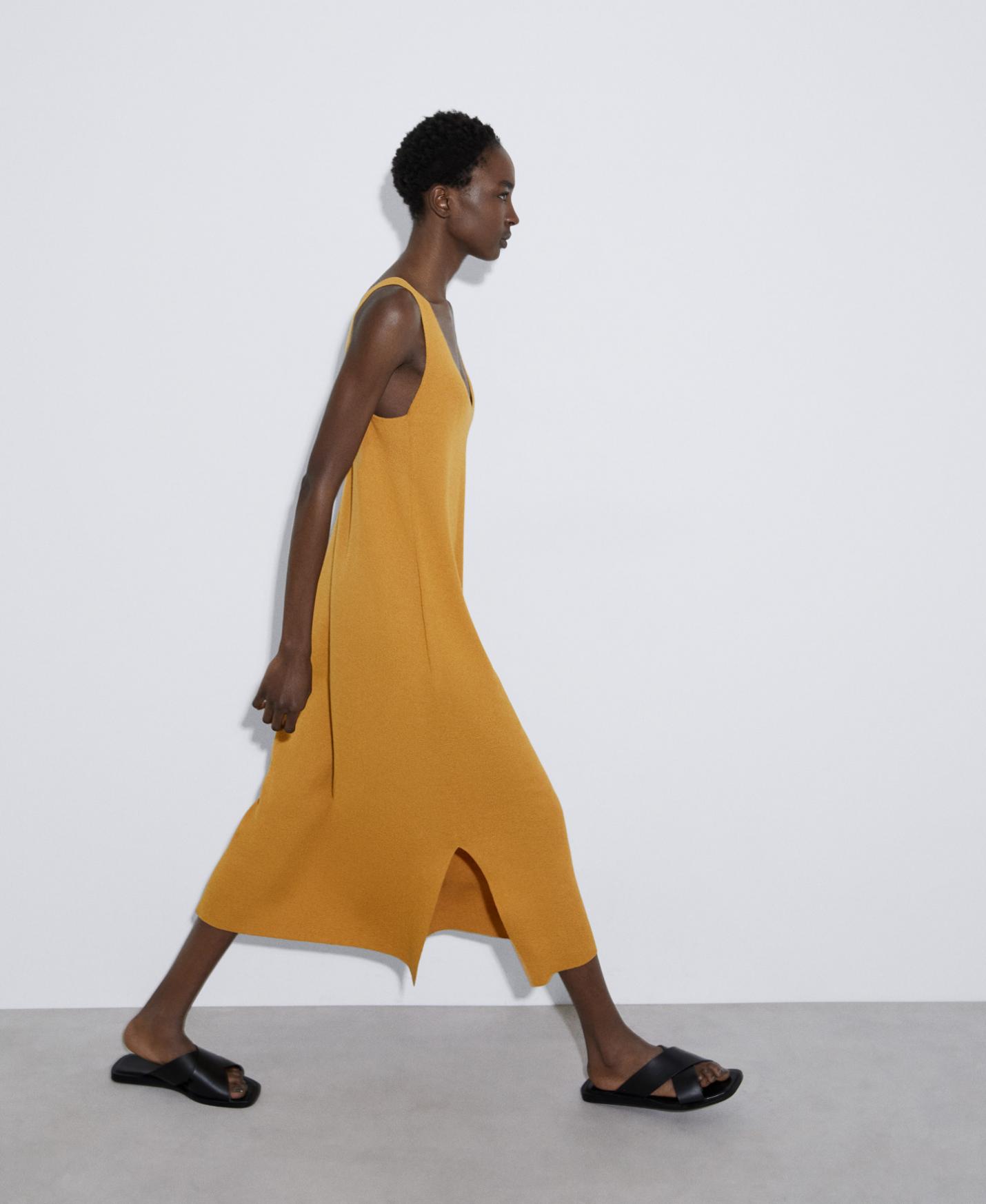 Vestidos y monos Adolfo Dominguez | Vestido de punto escote pico Mostaza Mujer