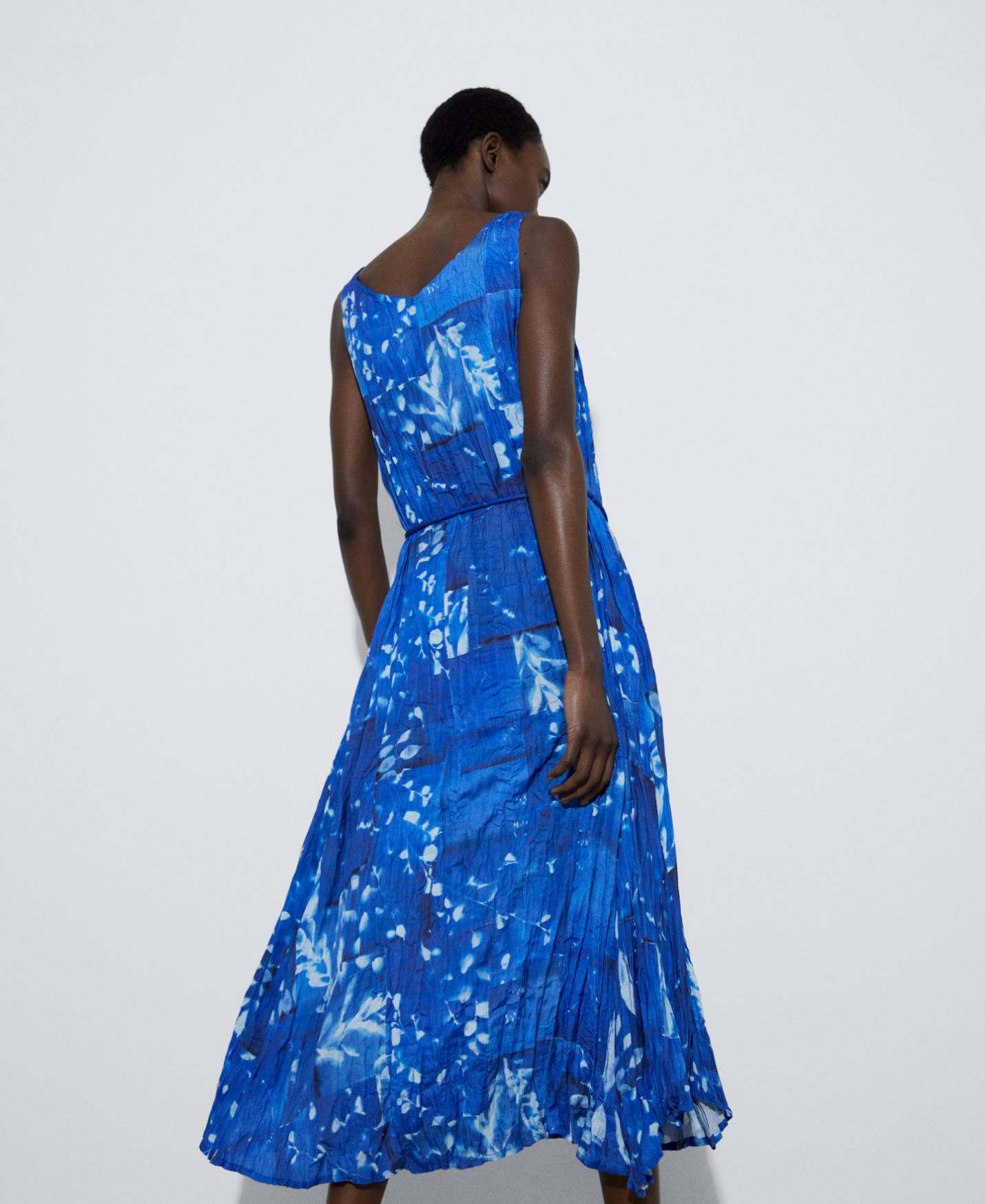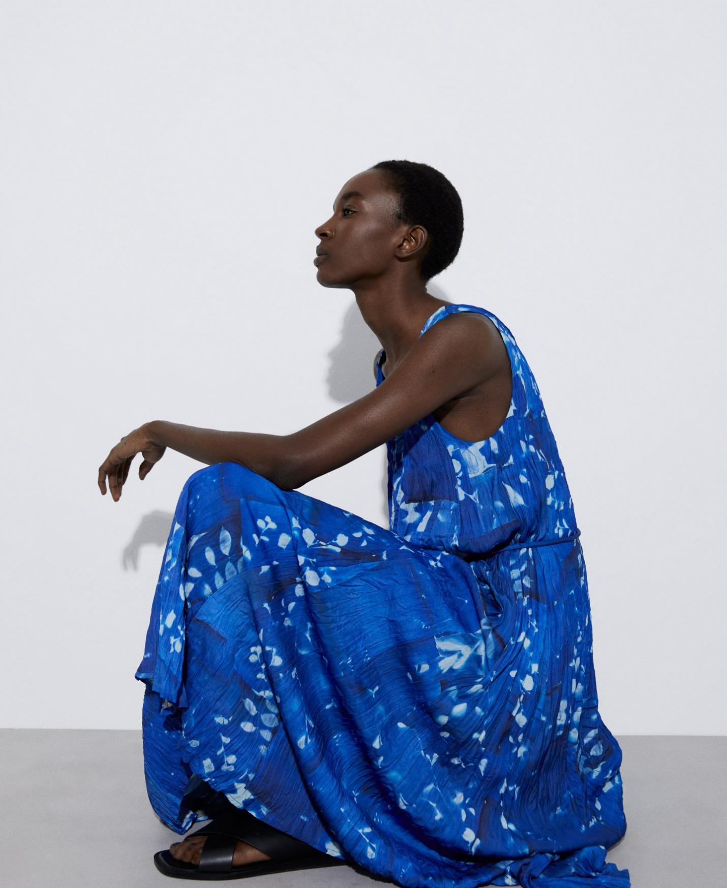 Vestido midi con estampado tye-dye. Corte fluido, manga de tirantes, bolsillos laterales.
