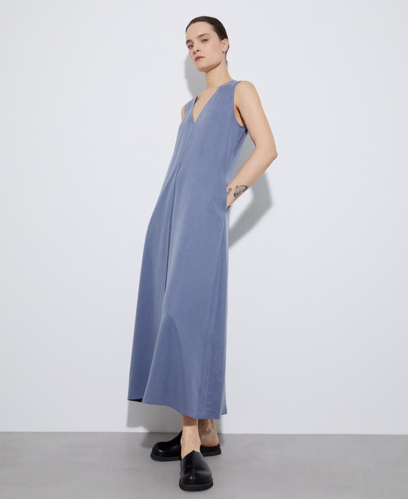 DescripciónRef.291101489121 Vestido evasé en lyocell de LENZING邃ída fluida. lyocell de LENZING邃>escote pico manga sisa caída fluida …