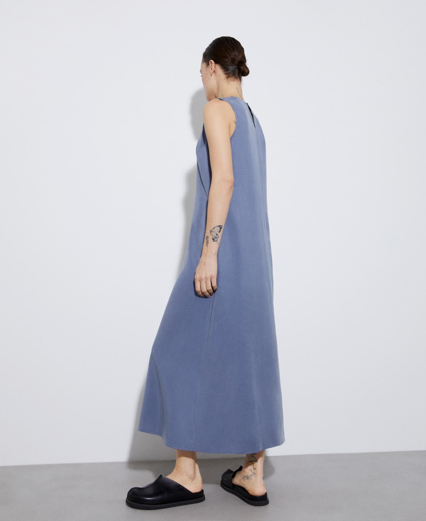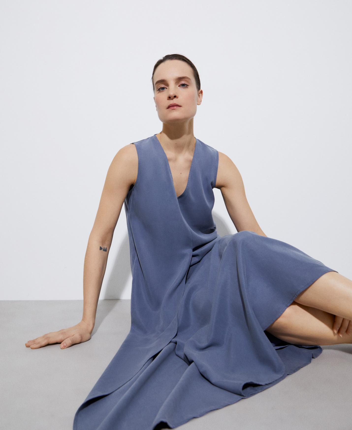 Vestidos y monos Adolfo Dominguez | Vestido evasé en lyocell Azul/Gris Mujer