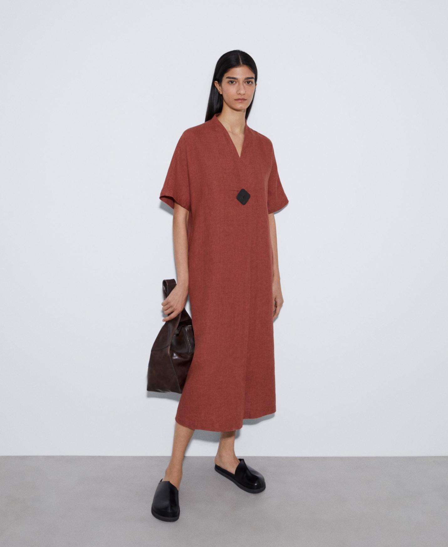 Vestidos y monos Adolfo Dominguez | Vestido línea recta en lino europeo Teja Mujer