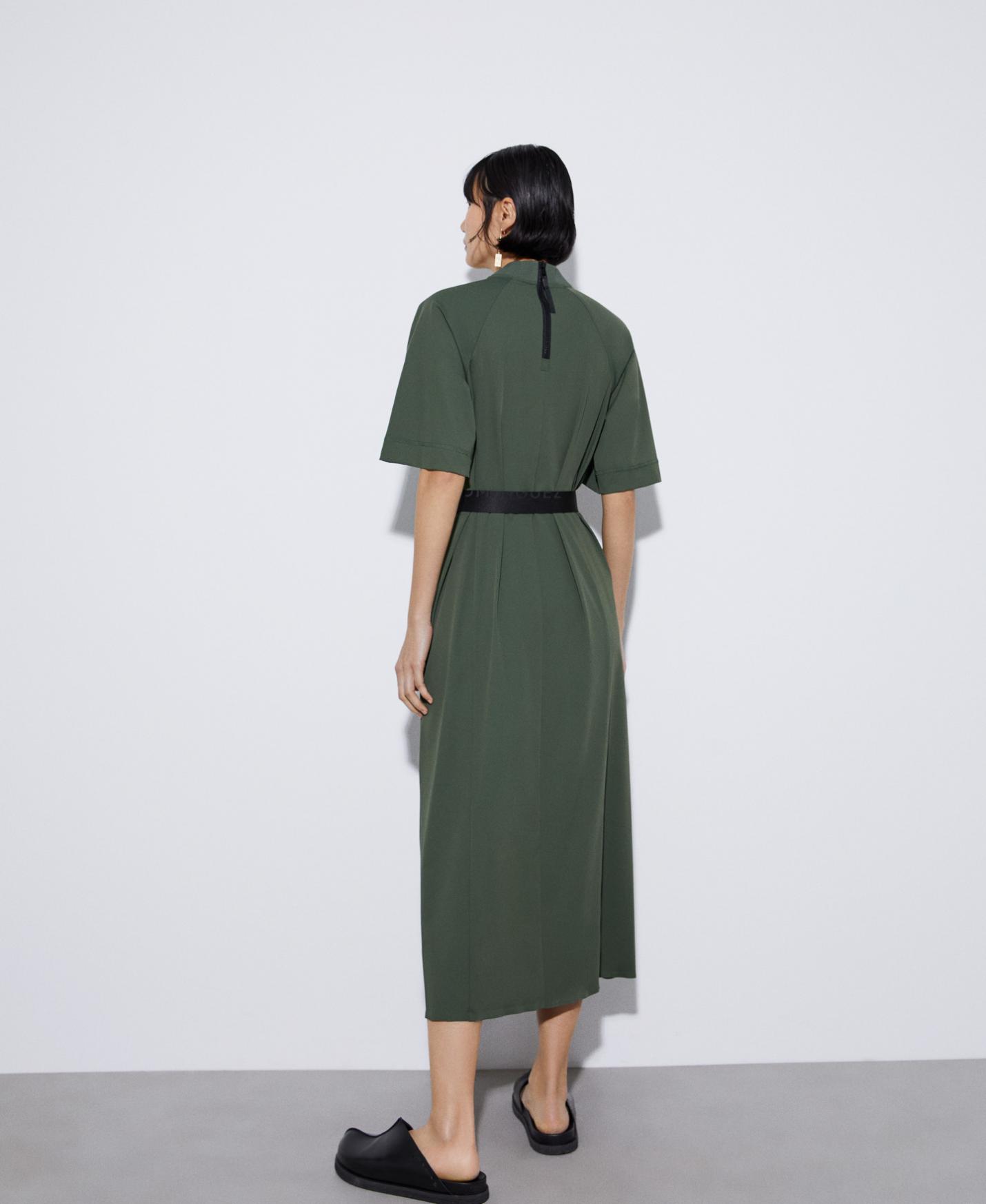 DescripciónRef.291011033121 Vestido maxi confeccionado en nylon convencional y nylon reciclado. Tiene cuello de punto a tono. Su manga, de largo codo, es ligeramente evasé y remata en punto de adorno. Además, presenta abertura y bolsillos e…