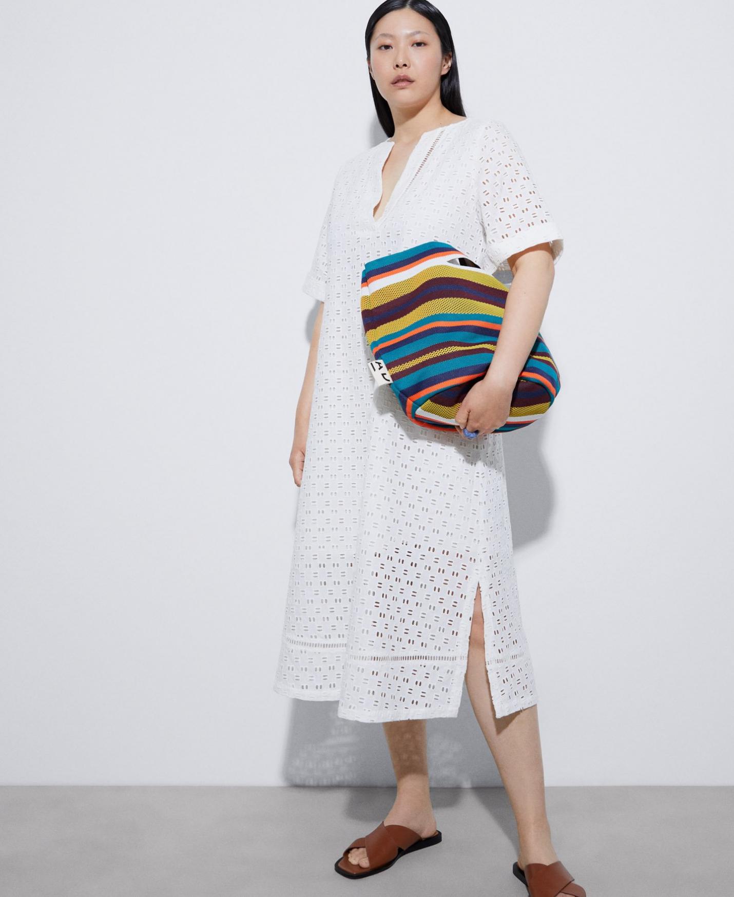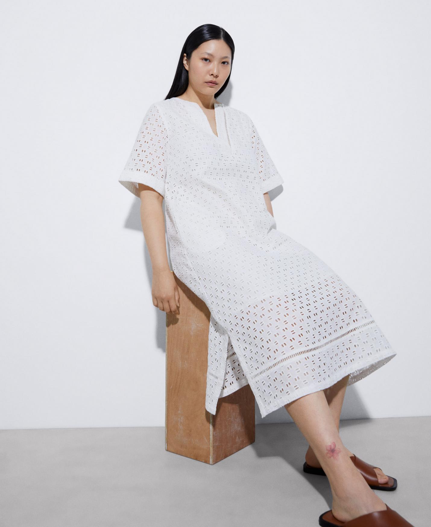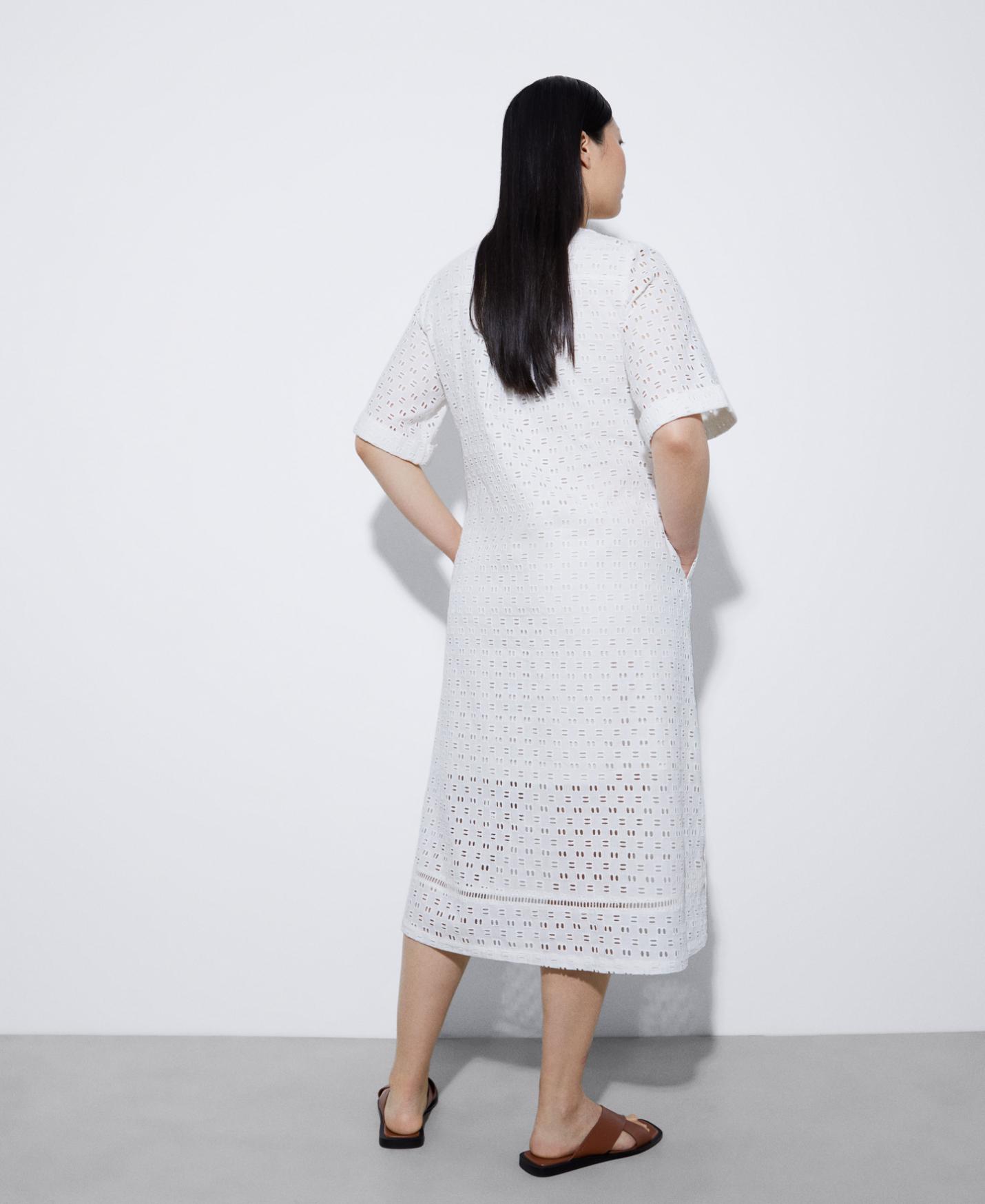 Vestidos y monos Adolfo Dominguez | Vestido midi con detalle bordado Blanconatural Mujer