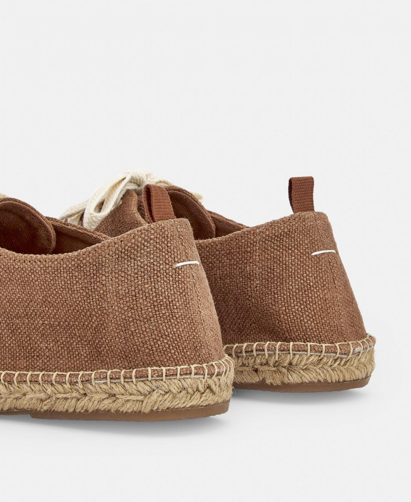 Esparteña en algodón con suela de caucho. Cierre de cordones. Plantilla en yute y piel.