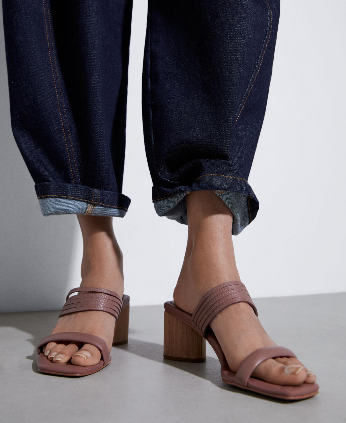 Zapatos Adolfo Dominguez | Sandalia cuadrada piel con tacón madera Ciruela Mujer