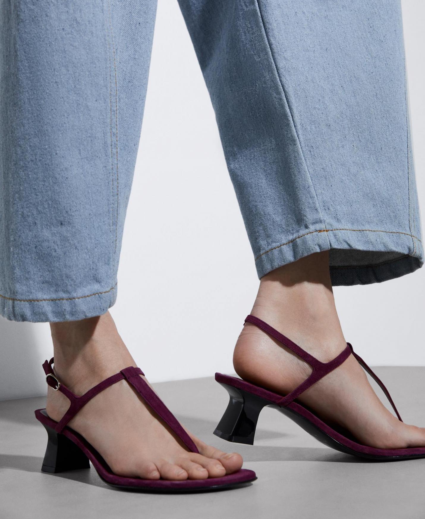 DescripciónRef.296051972221 Sandalia con tacón bajo, posición para dedo y tira ajustable con hebilla en t…