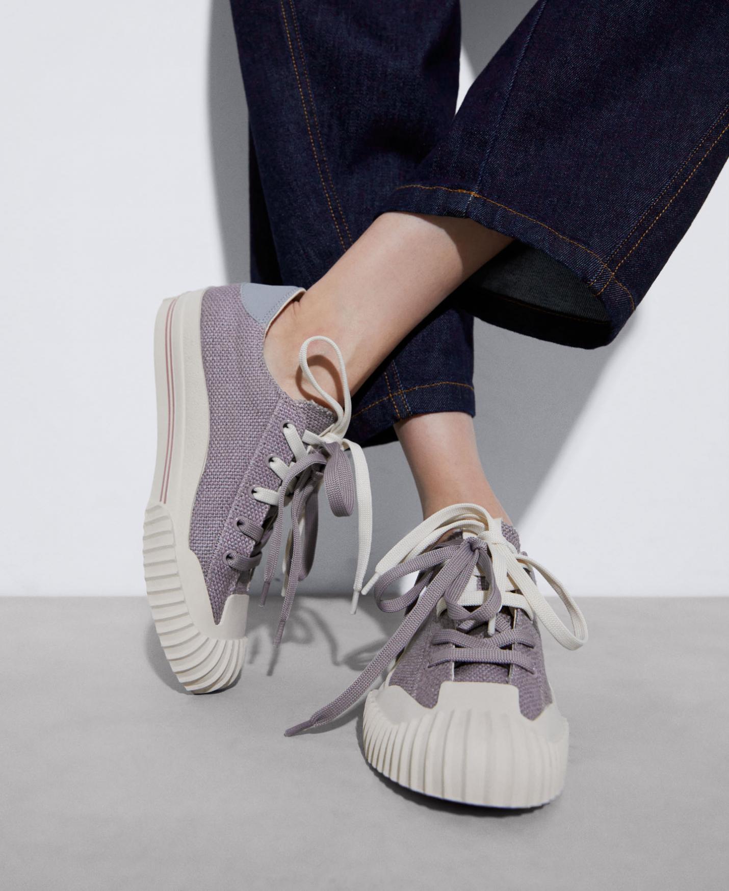 Zapatilla en tejido de lino. Con detalle de maxicordones, plantilla interior memory foam y suela de caucho. Incluye segundo juego de cordones.