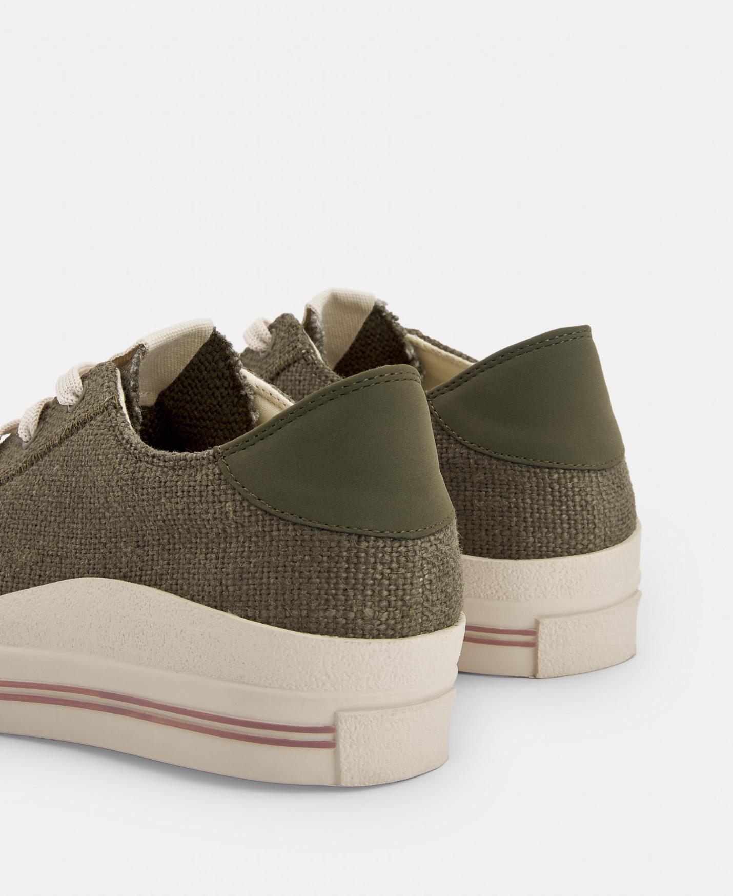 Zapatos Adolfo Dominguez | Zapatilla maxicordones en lino Verde Mujer