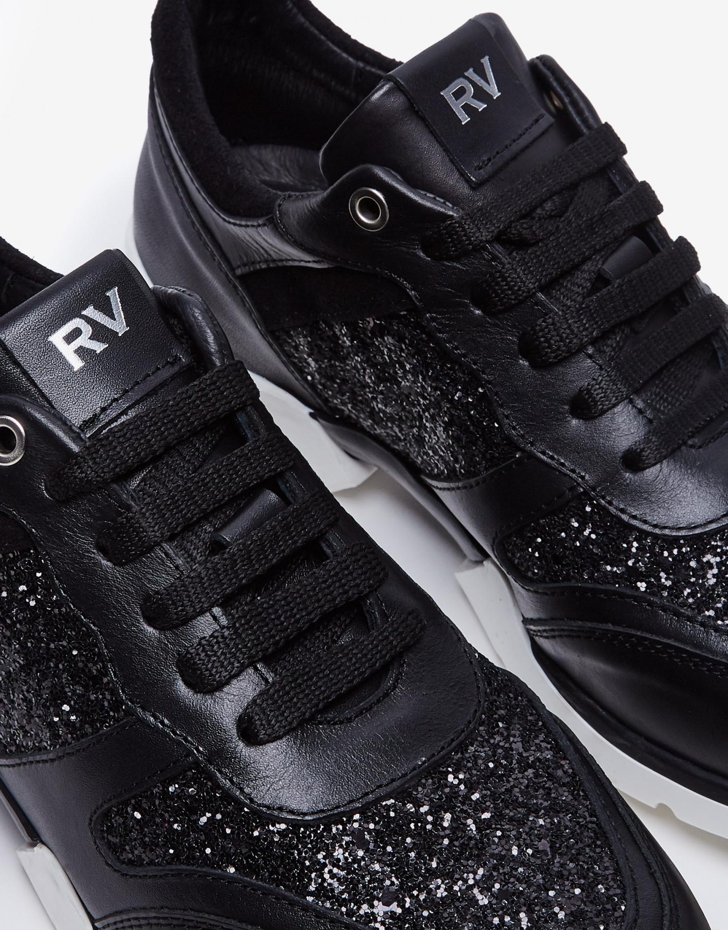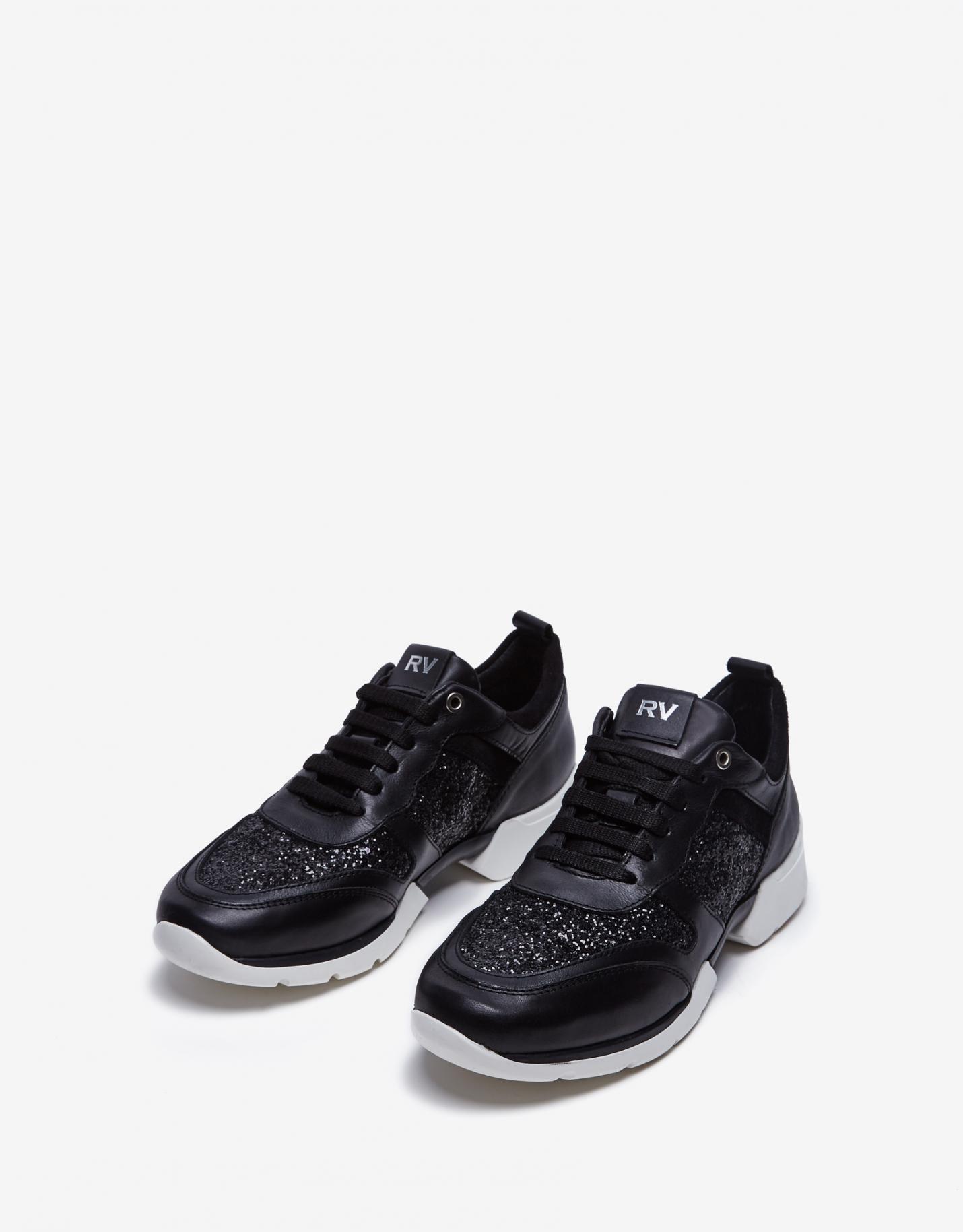 Zapatos Roberto Verino | Deportiva Piel Negra Y Glitter Mujer