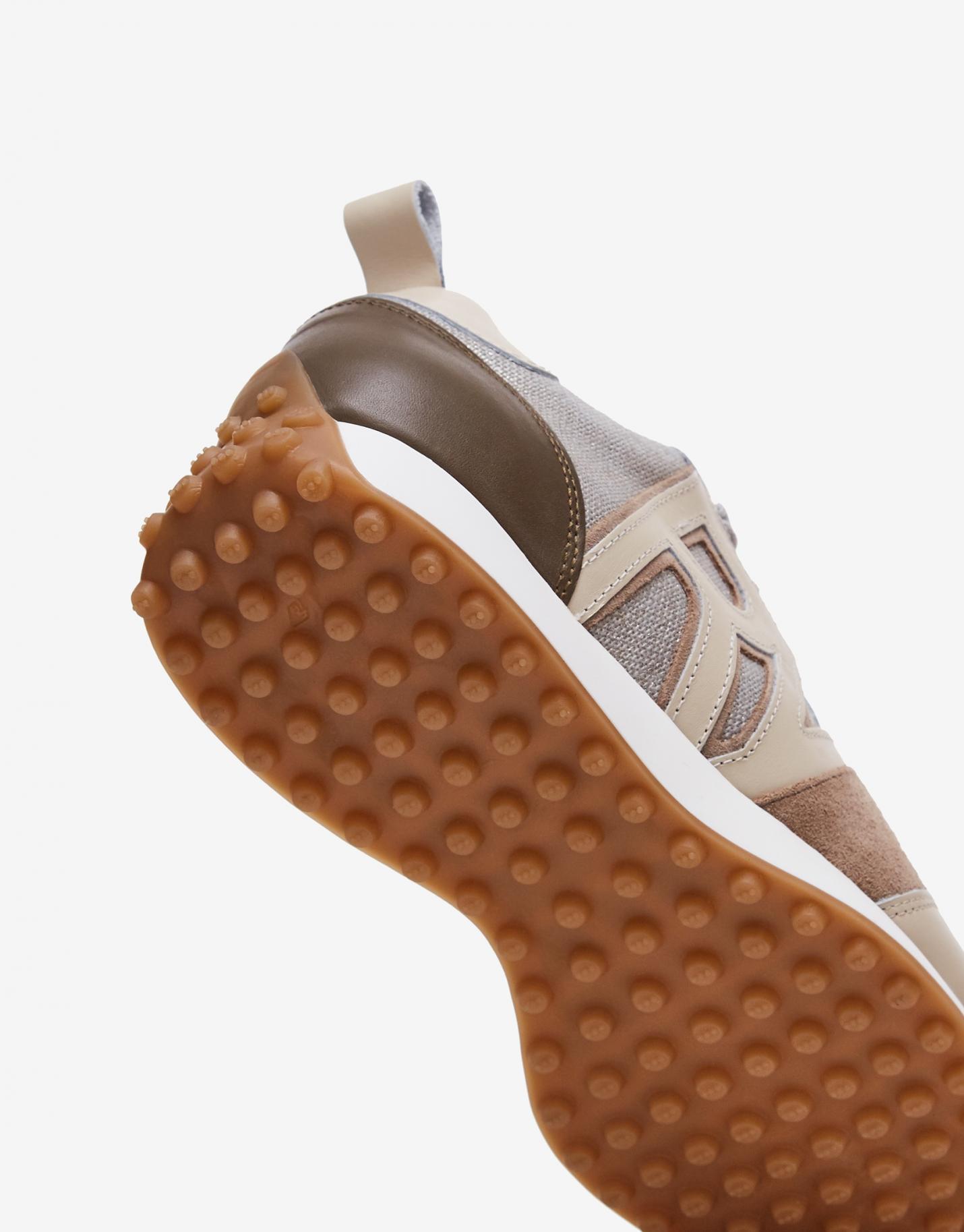 Zapatilla deportiva elaborada en combinación de piel color beige, ante en color cámel y tejido en color gris perla. Suela color blanco, cierre con cord…